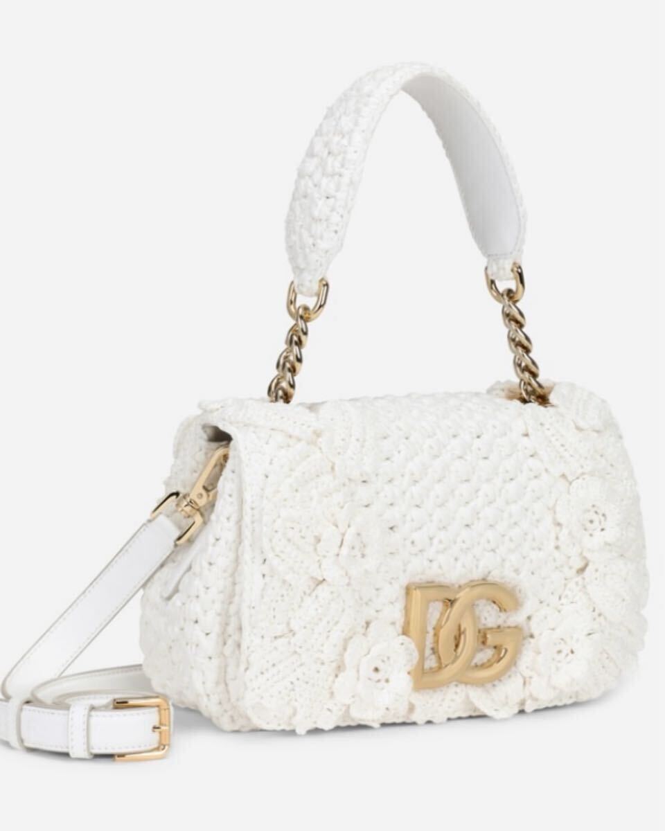 トラディションコレクションのインスピレーションは、常にイタリアの手工業と職人技。明るさと喜び、安らぎを与えるホワイトが主役を務めます。記憶の真髄が日々の暮らしと出会い、コンテンポラリーテイストをまとった新しいルックが生み出されます。3.5シリーズの新作バッグは、クロッシェ編みのラフィア製。ゴールドメッキメタル製のDGロゴが特徴的です。