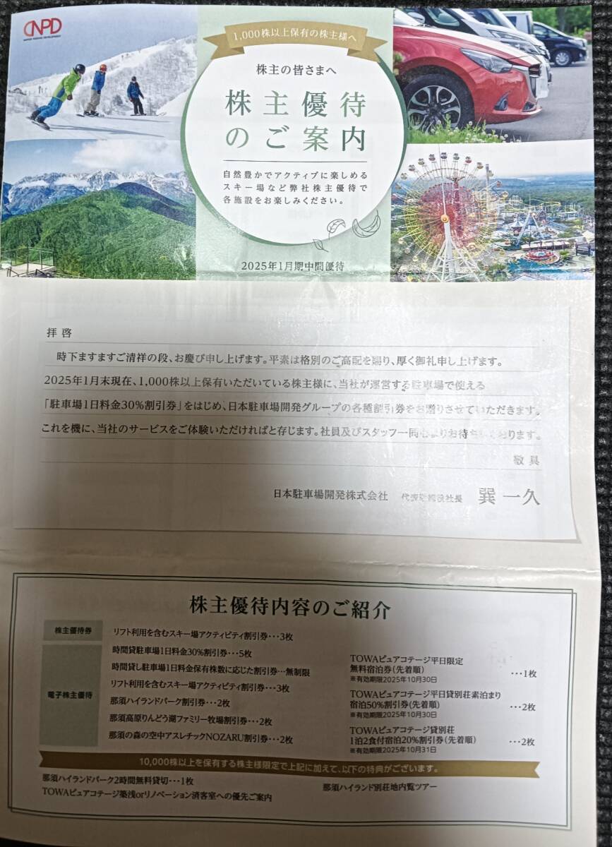日本駐車場開発株主優待券 紙チケットと電子チケット一式です。1000株保有分。