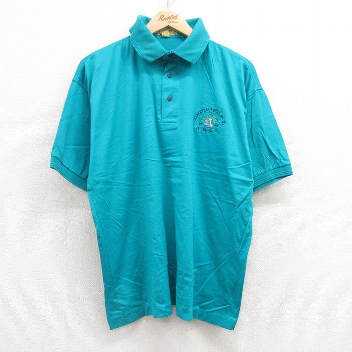 【商品名】 XL★古着 半袖 ポロ シャツ メンズ 90年代 90s 木 コットン USA製 青緑