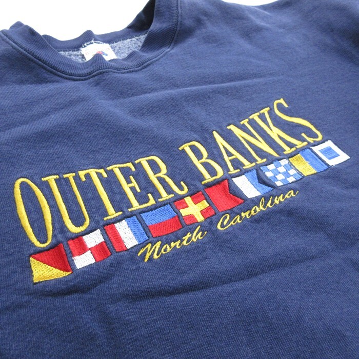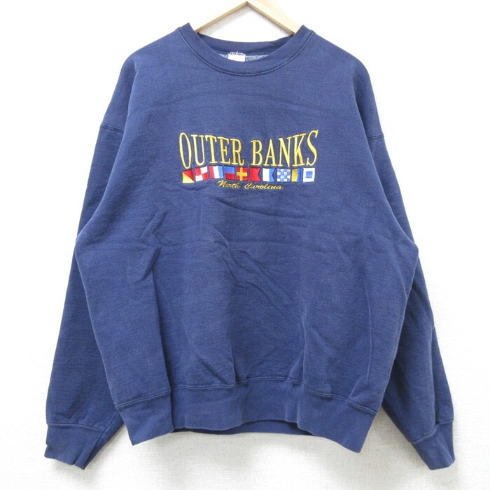 【商品名】 XL★古着 フルーツオブザルーム 長袖 スウェット メンズ 90年代 90s アウターバンクス 刺繍 クルーネック USA製 紺