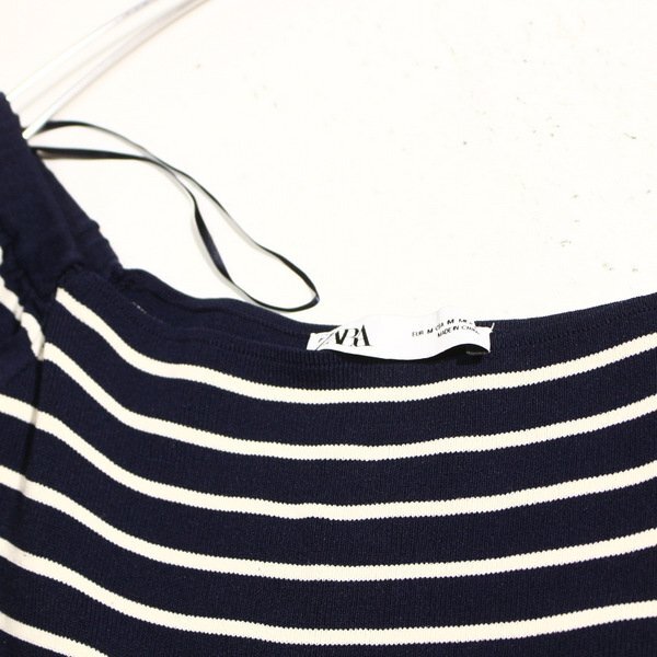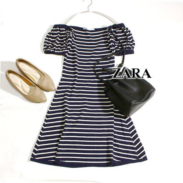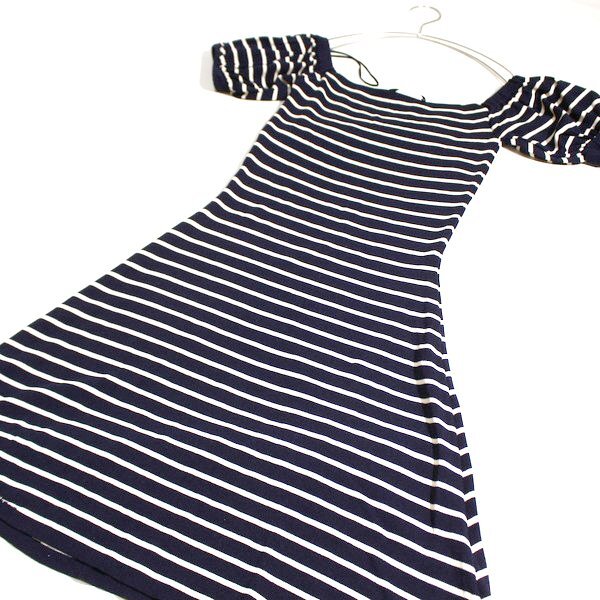 美品 ザラ ZARA 可愛いボーダー柄 レーヨン ストレッチ ニット ワンピース M 春 夏 25B07