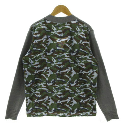 シップスジェットブルー SHIPS JET BLUE カモフラ切替えカーディガン 126-45-0058 60192 長袖 ウール混 グレー S メンズ