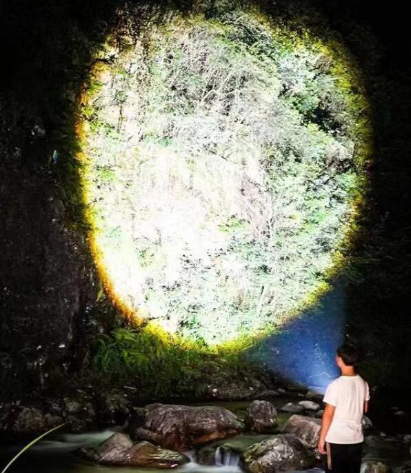 で照射し、より幅広い範囲を真昼のように照明できます。先端LEDライトを点灯させると懐中電灯と