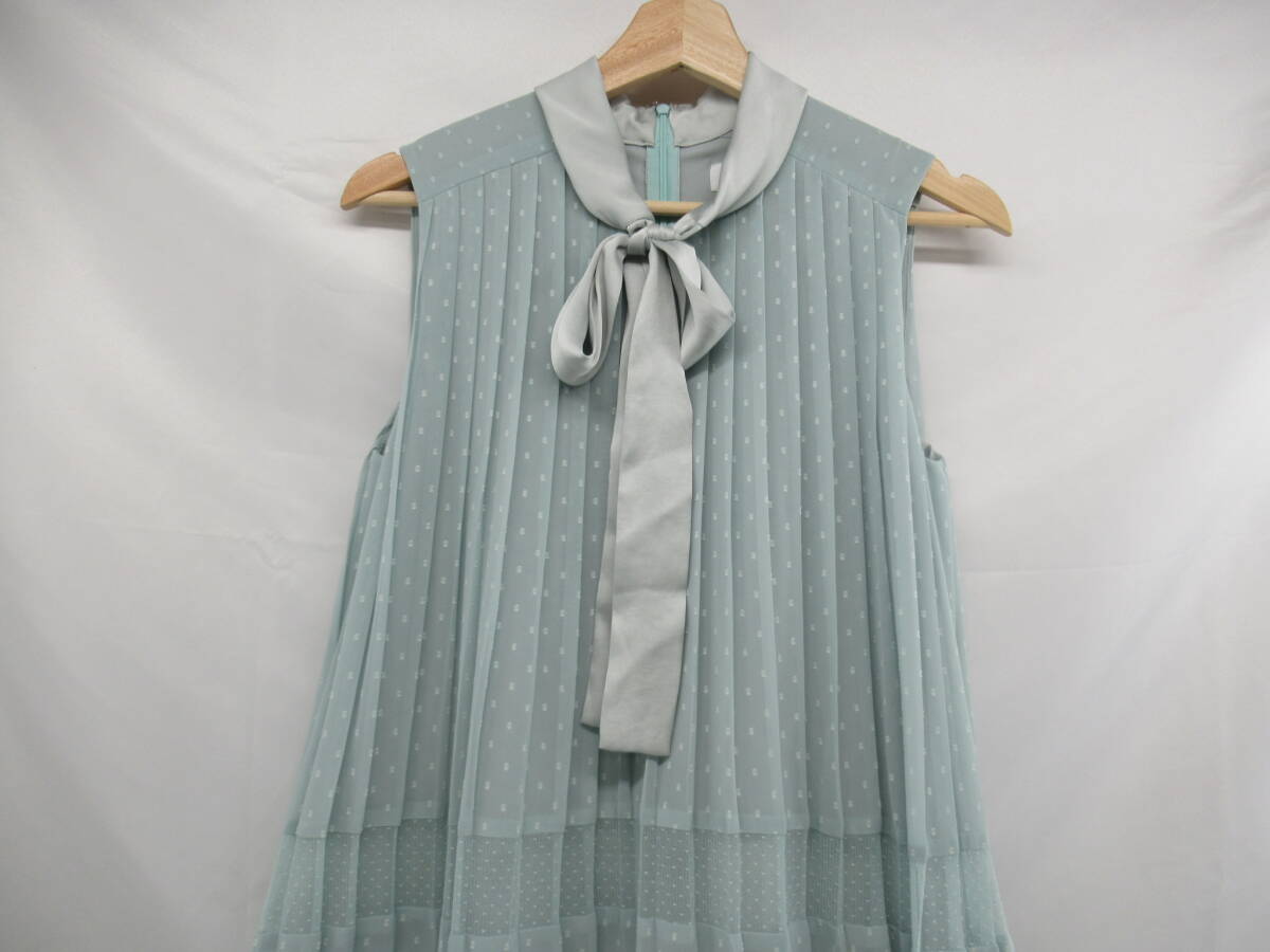 【送900円】9637 最終 JILLSTUART ジルスチュアート ノースリーブシアーワンピース リボン 水玉 ブルー レース サイズ 2 バックジップ