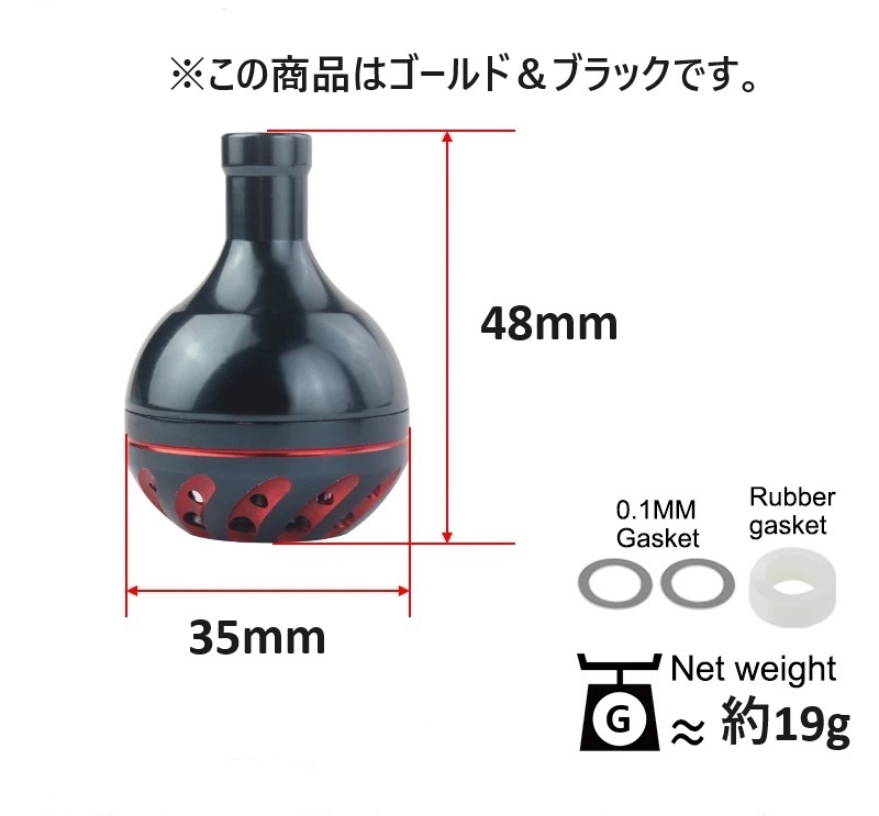 35mmリールパワーハンドルノブ(ゴールド&ブラック)です。