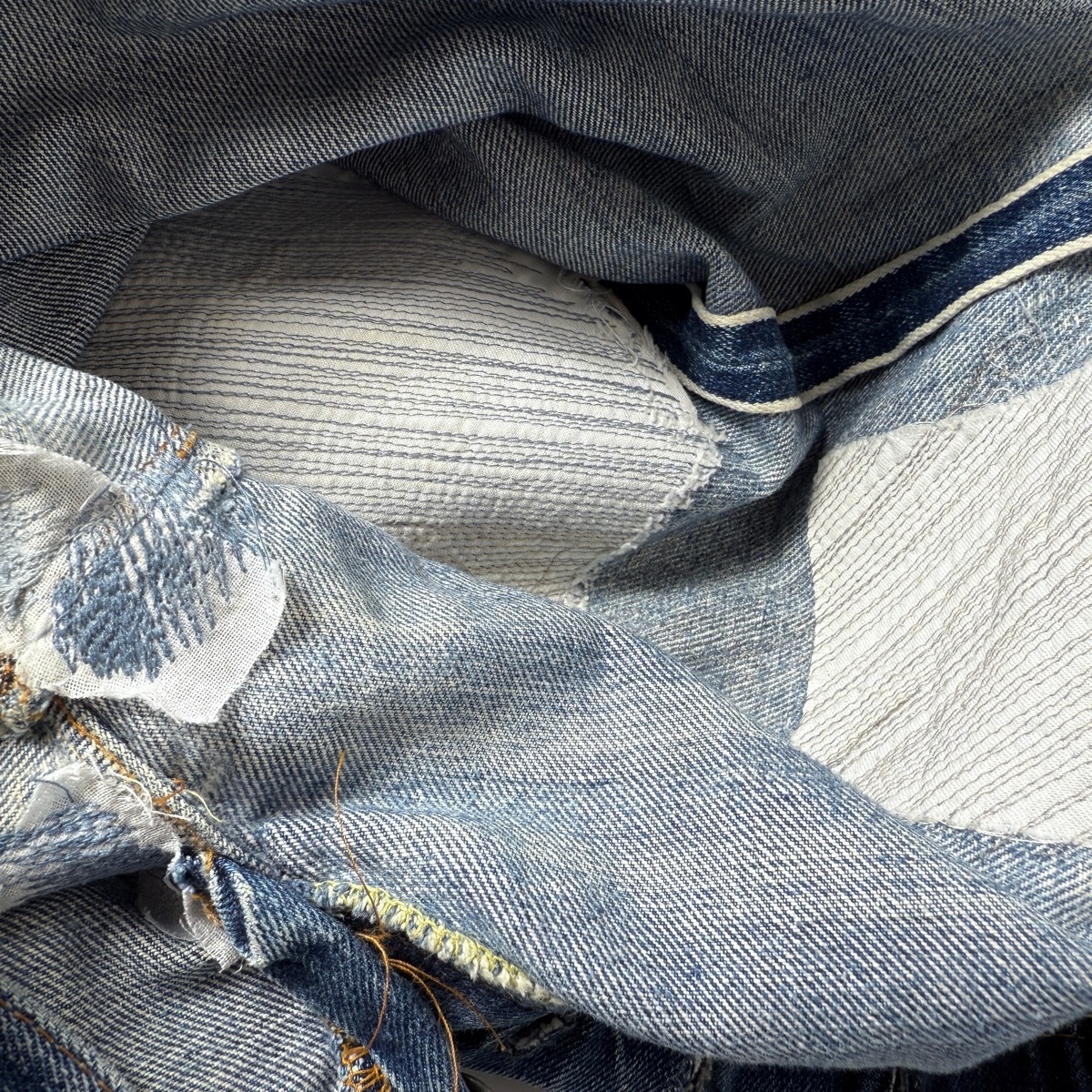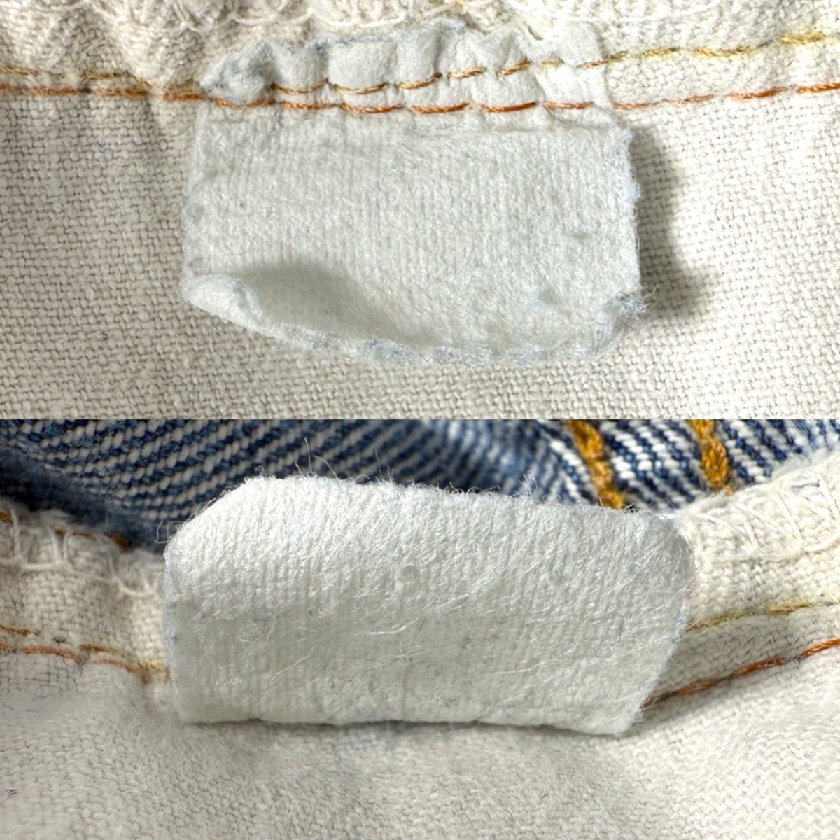 バックポケット裏シングルステッチ、ボタン裏6刻印、セルビッジです。