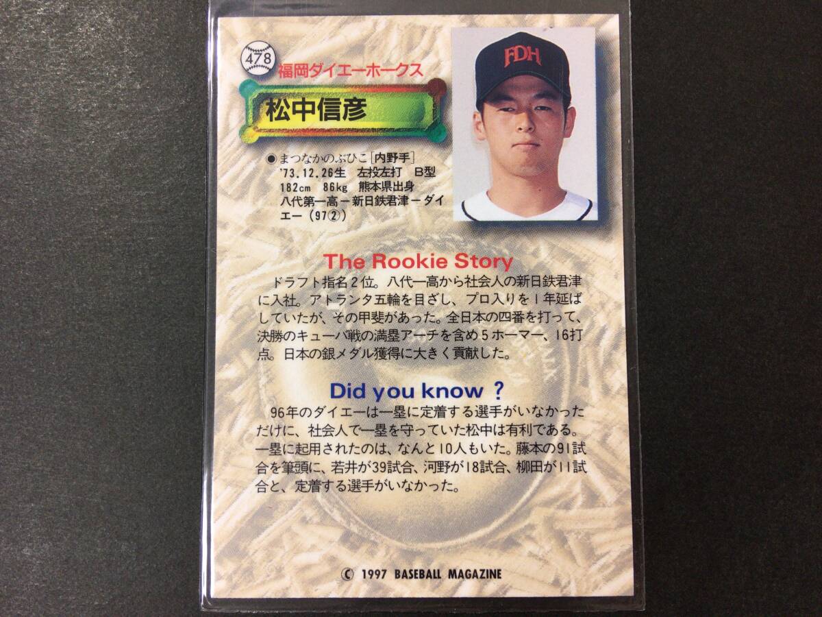 1997 BBM ベースボールカード #478 福岡ダイエーホークス 松中信彦 ルーキーカード です。