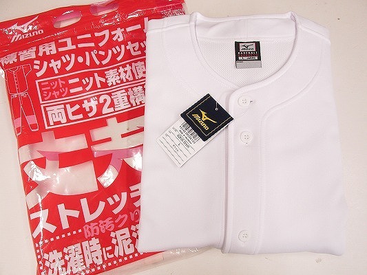i4130:未使用*MIZUNO(ミズノ) 52FW78901 練習用上下セット L ニットシャツ&パンツ セット 白 野球
