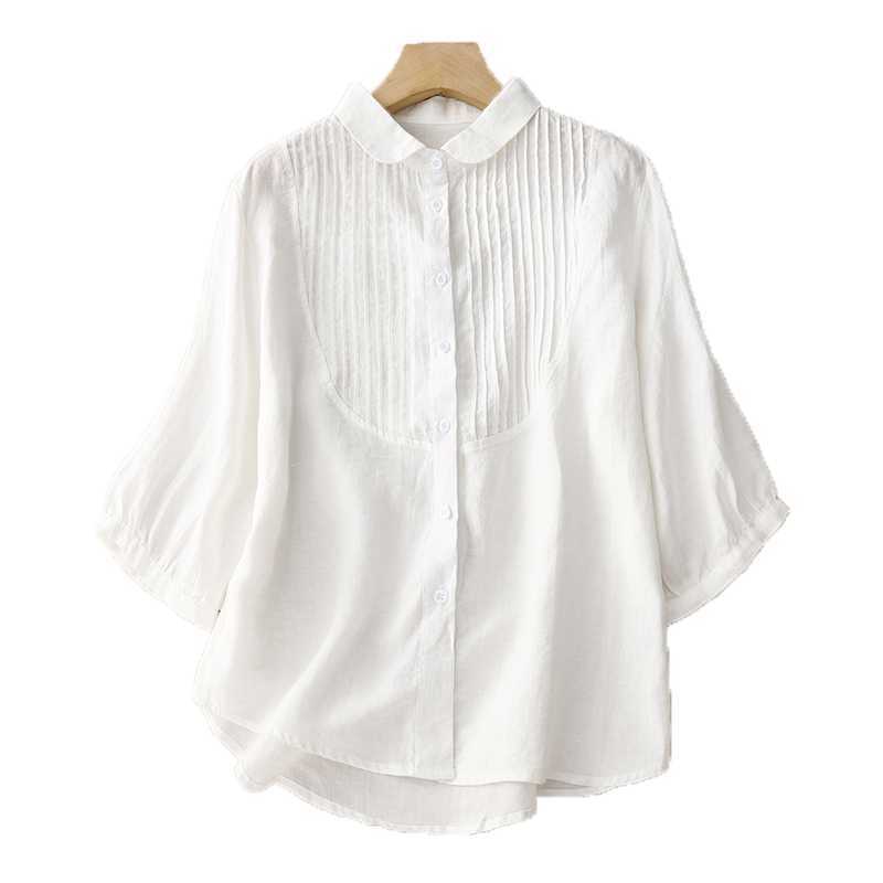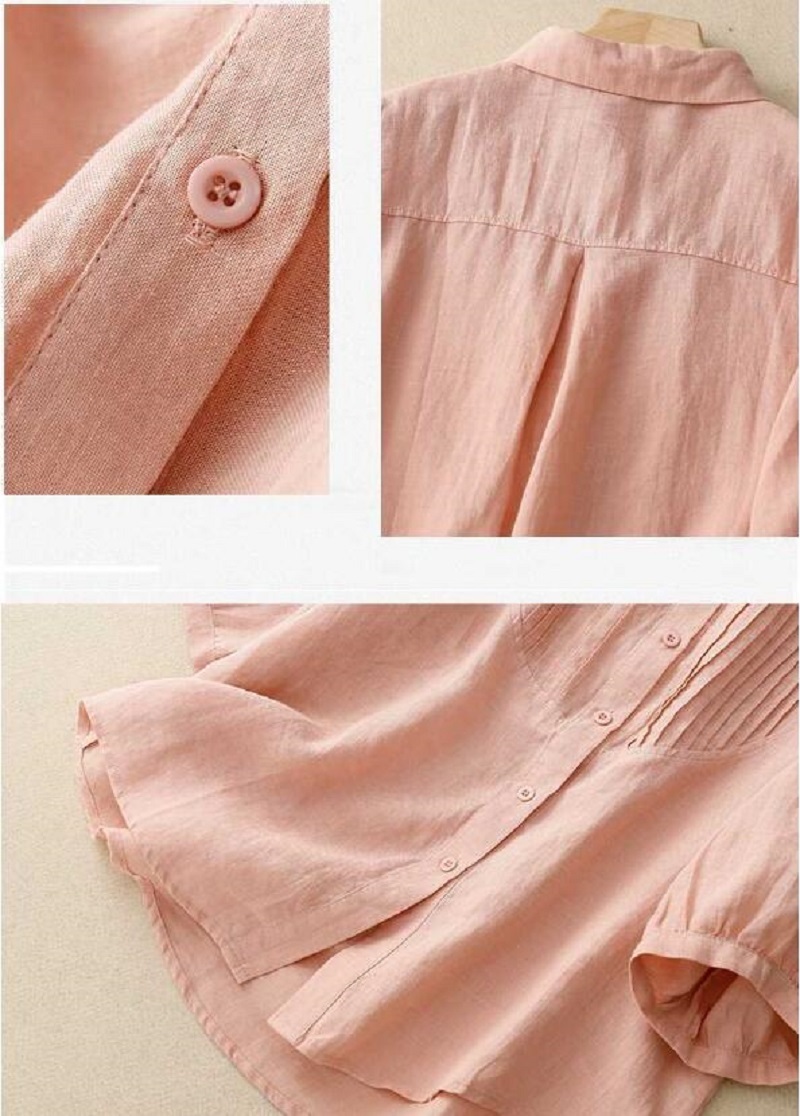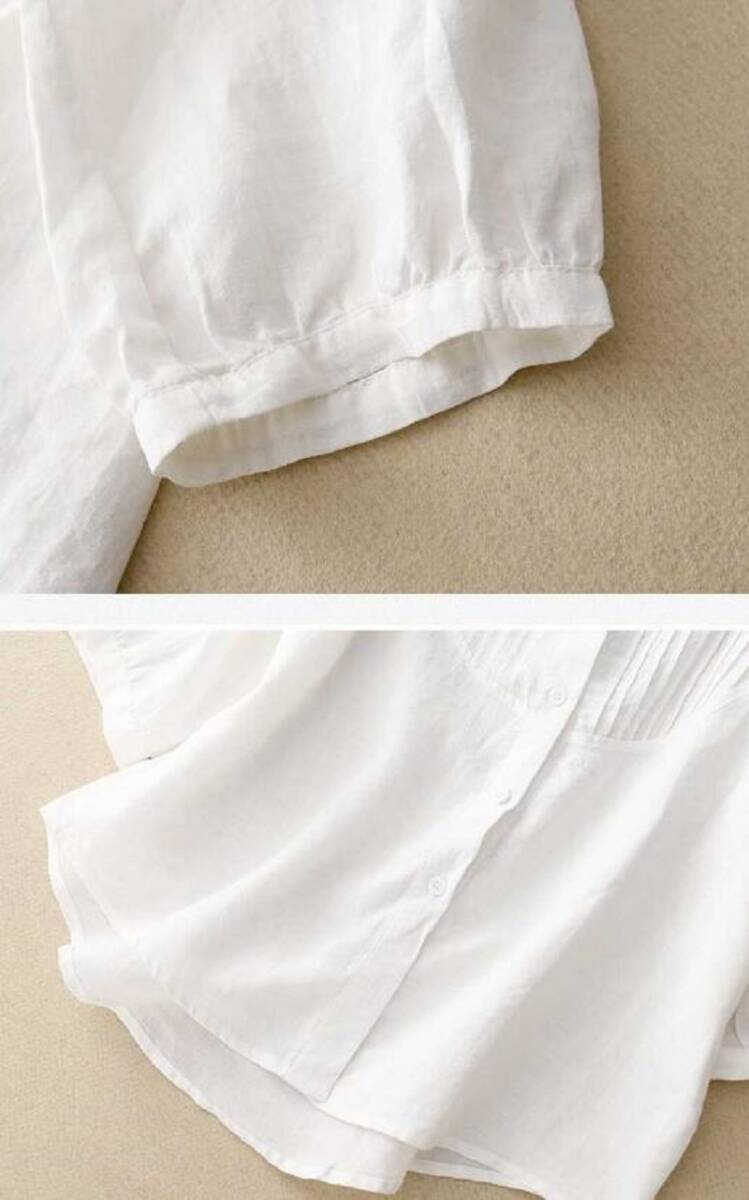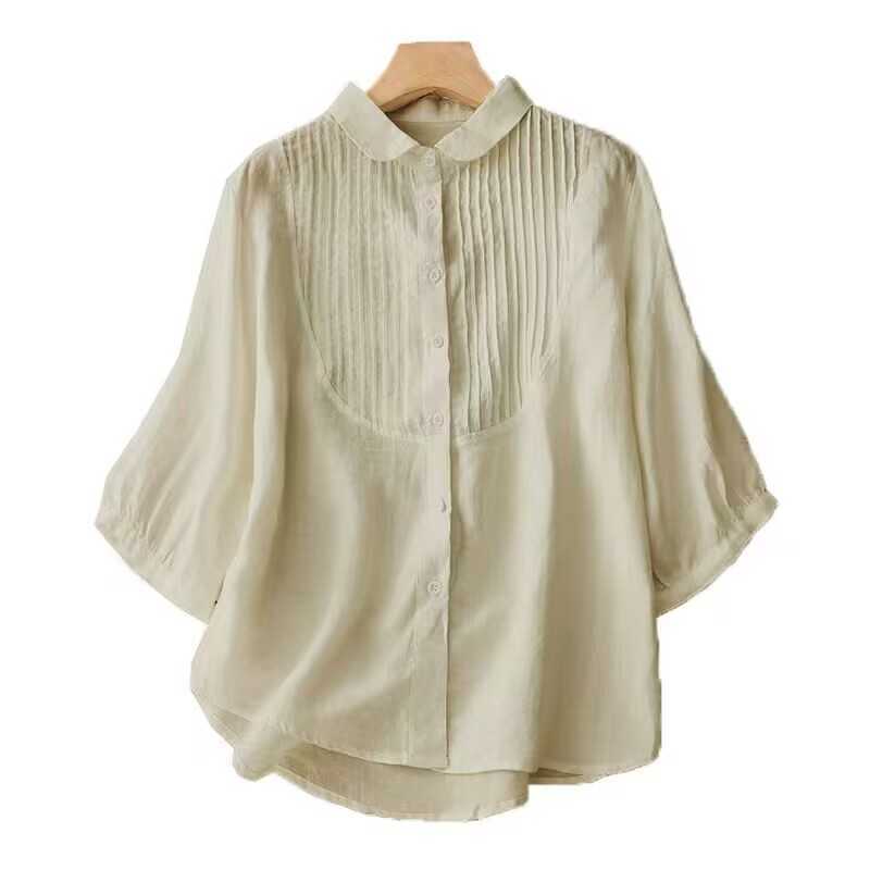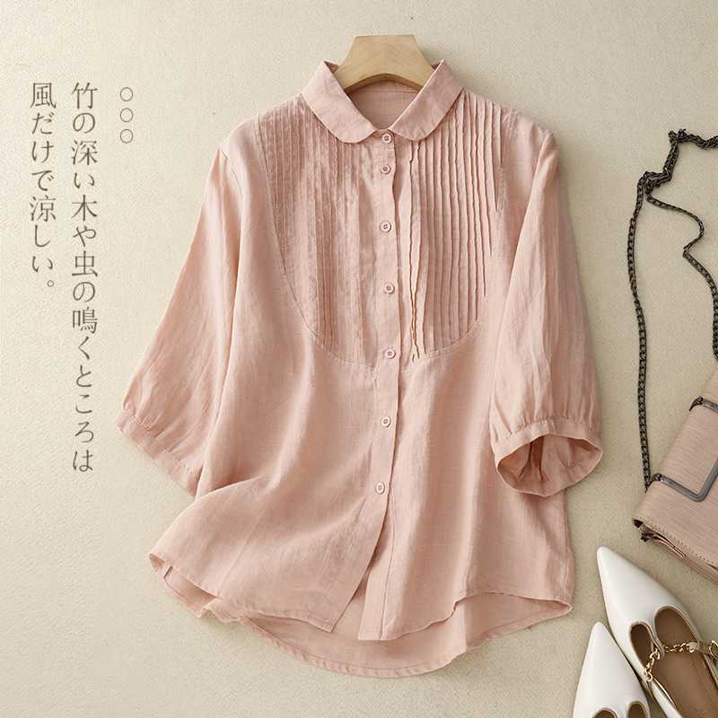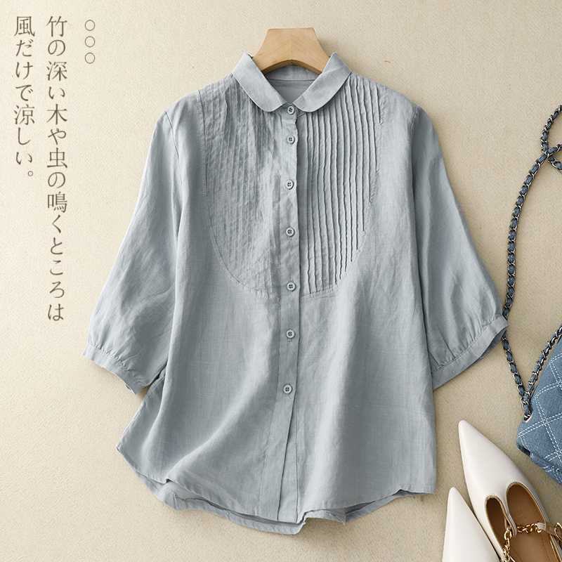 同梱1万円送料無料可愛いシャツ七分袖レディース シャツブラウス綿麻レディーストップス ブラウス ゆったり大きいサイズ通勤ライトグリーン
