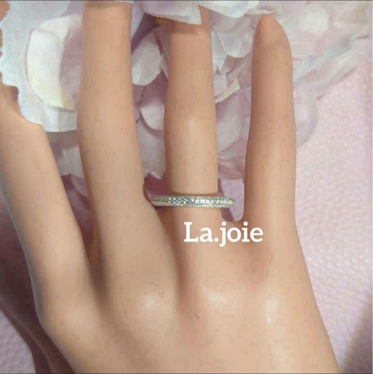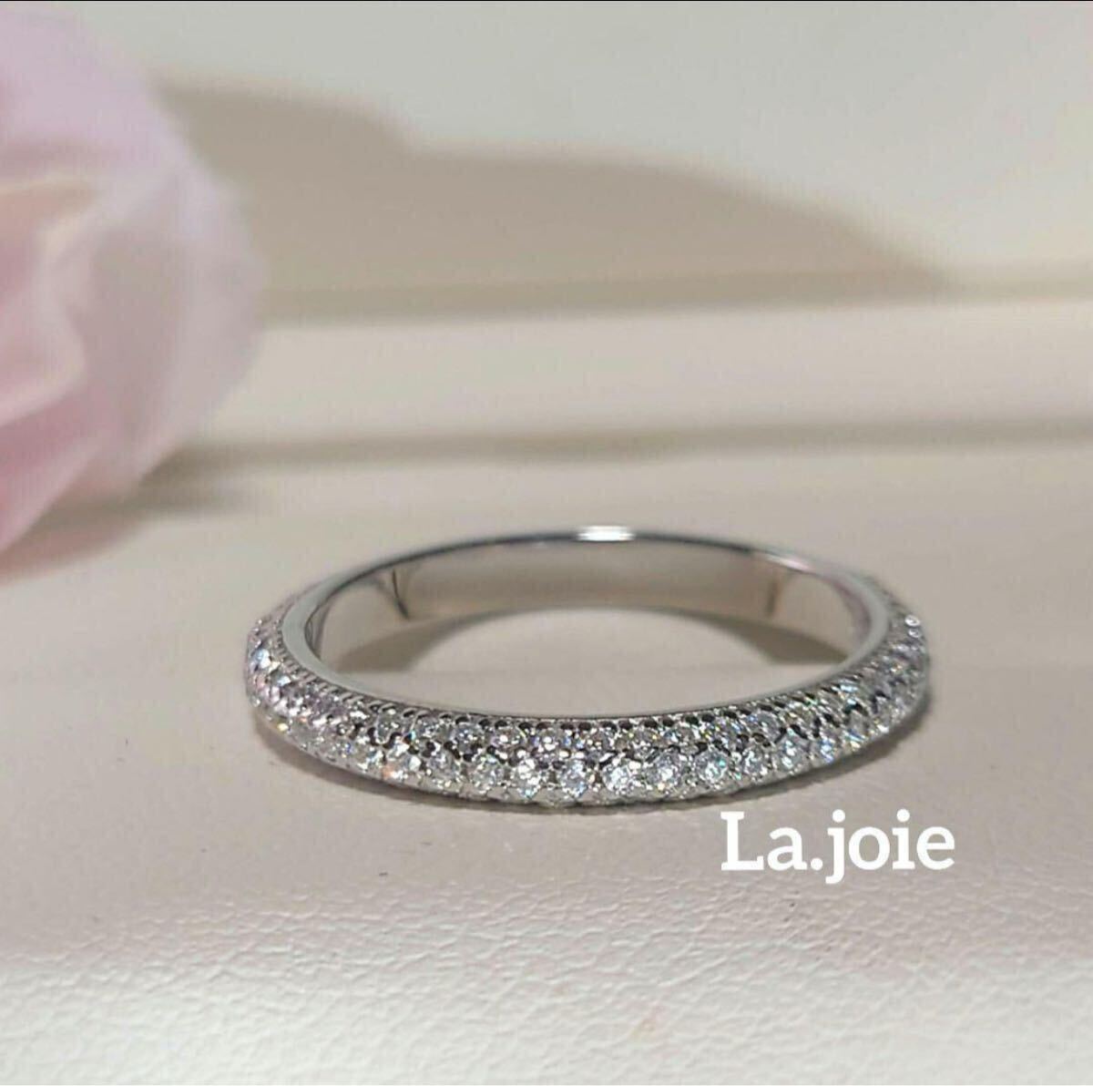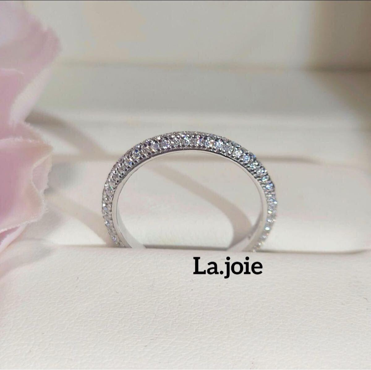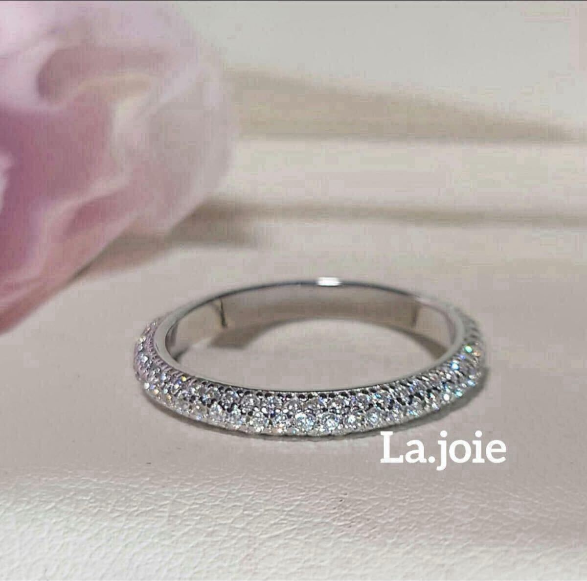 美しいモアサナイトを丁寧に敷き詰めた3ラインのフルエタニティーリングになります。