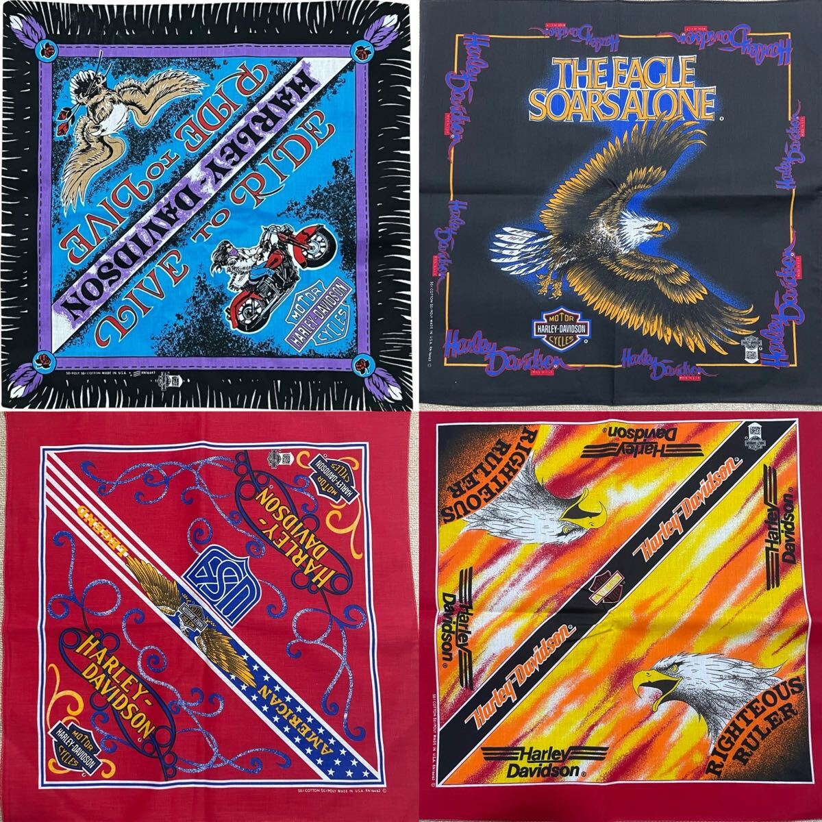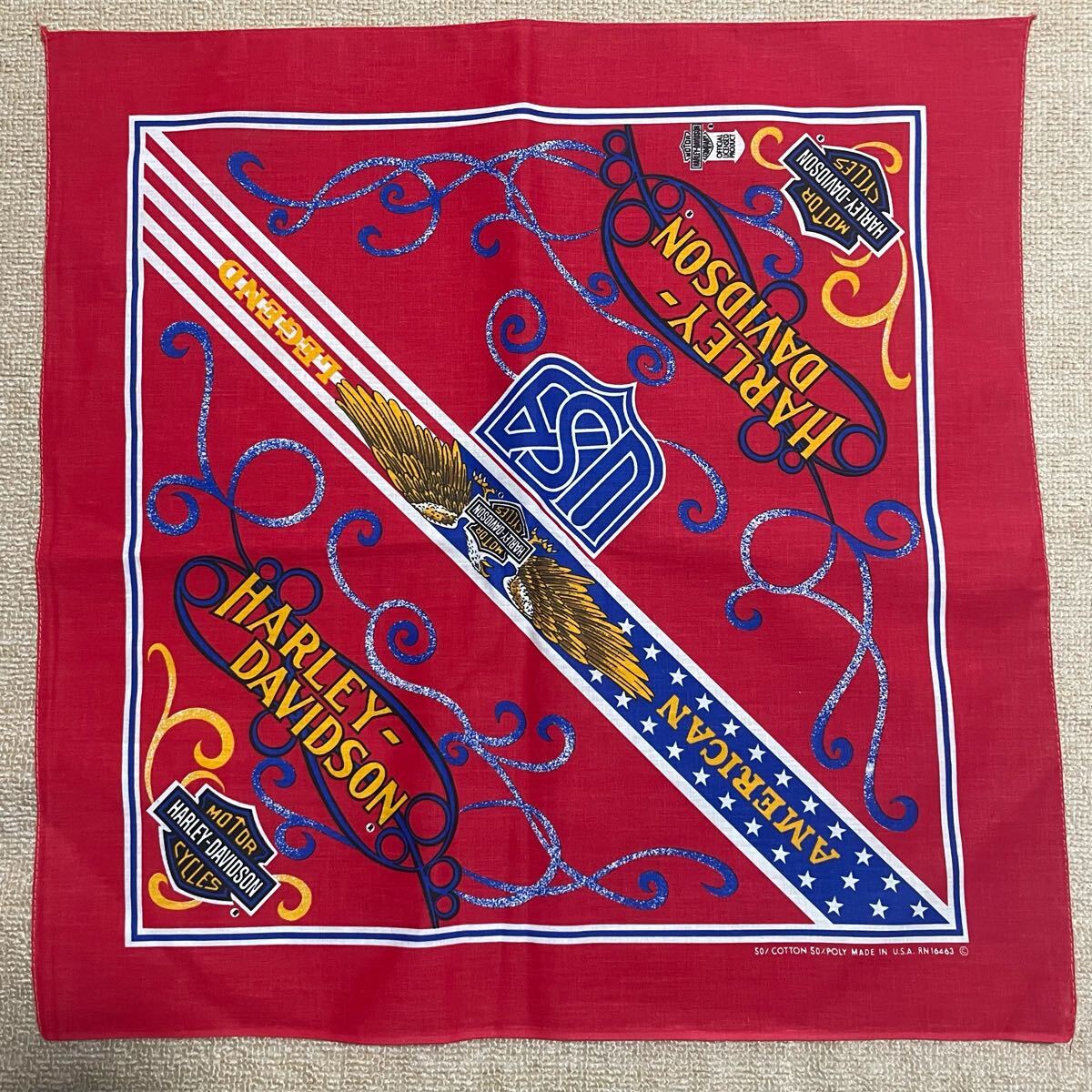 1980~90年代頃のものと見えるHARLEY DAVIDSONのバンダナです。