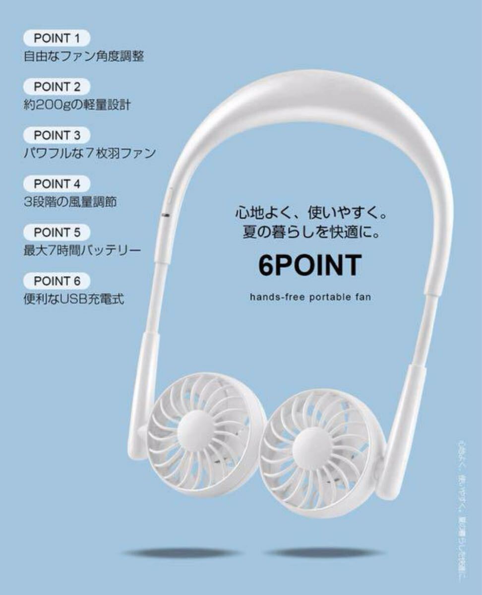 ポータブル扇風機 ハンズフリー 超静音実現 10時間超強駆動 大容量LG2000mAh 強風モード