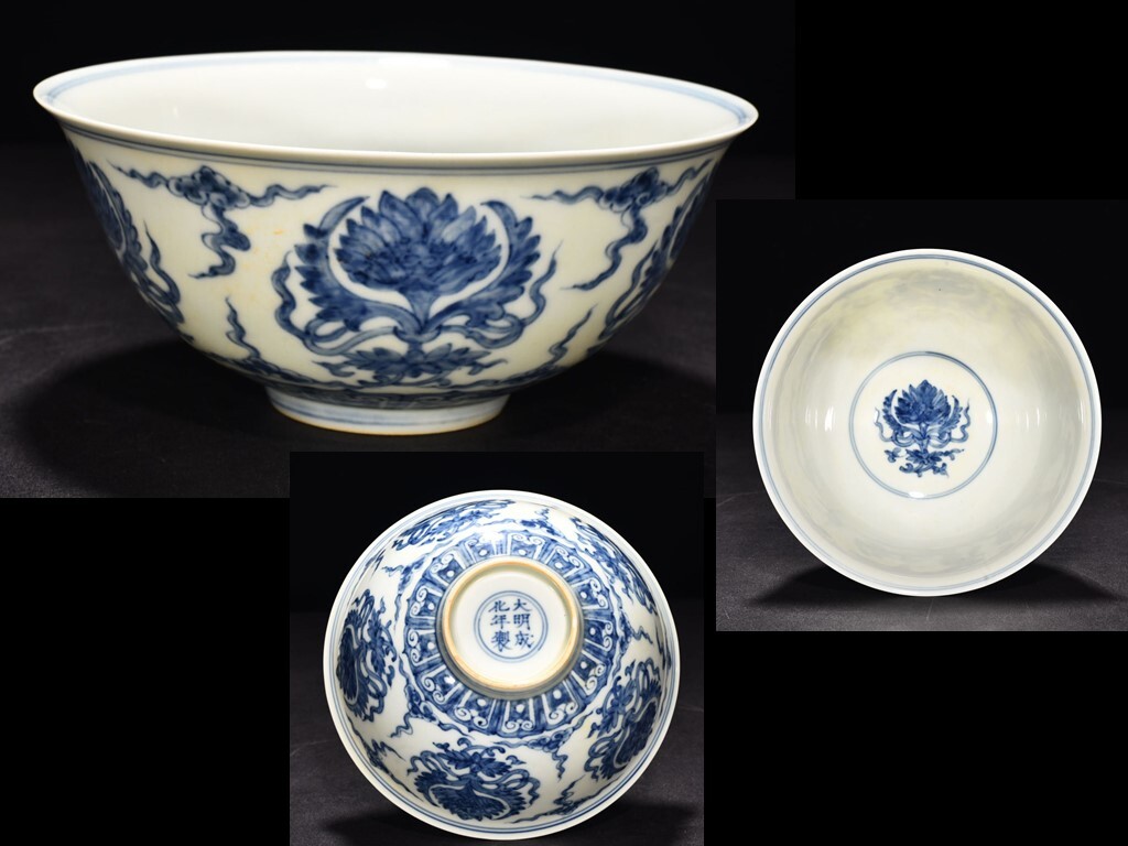 商品名 ■TB434■大明成化年制銘 青花寶象花卉紋宮式碗 時代物 古玩 唐物 古陶磁器■