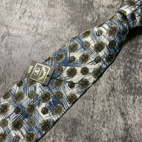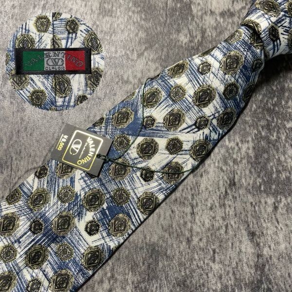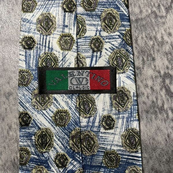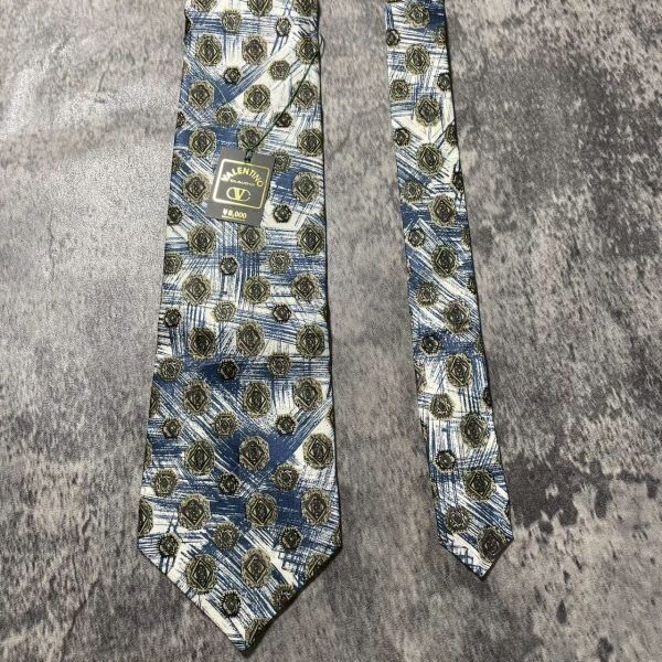 [KN258] VALENTINO ブルー ホワイト シルク ネクタイ