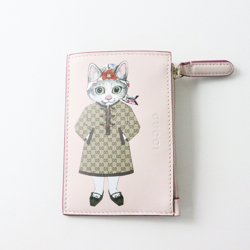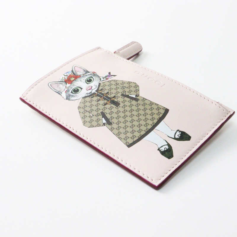 未使用 2025 グッチ GUCCI 847921 日本限定 ヒグチユウコ キーケース/ペールピンク レザー GGスプリーム 猫 ポーチ【2400014521603】