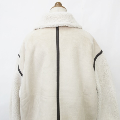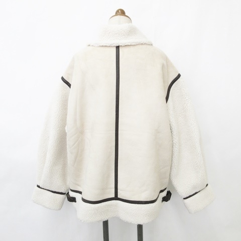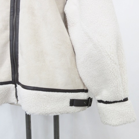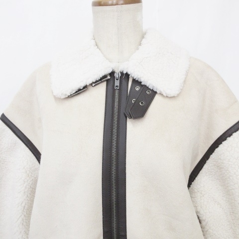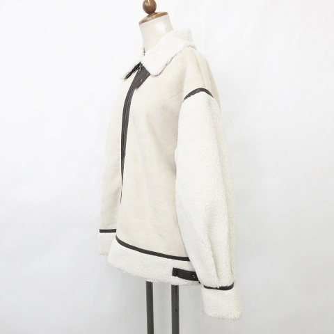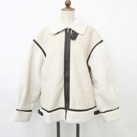 未使用品 ジャケット B3 フェイクムートン スエード ボア 別布 タブ ジップアップ ベージュ 茶 ブラウン M レディース
