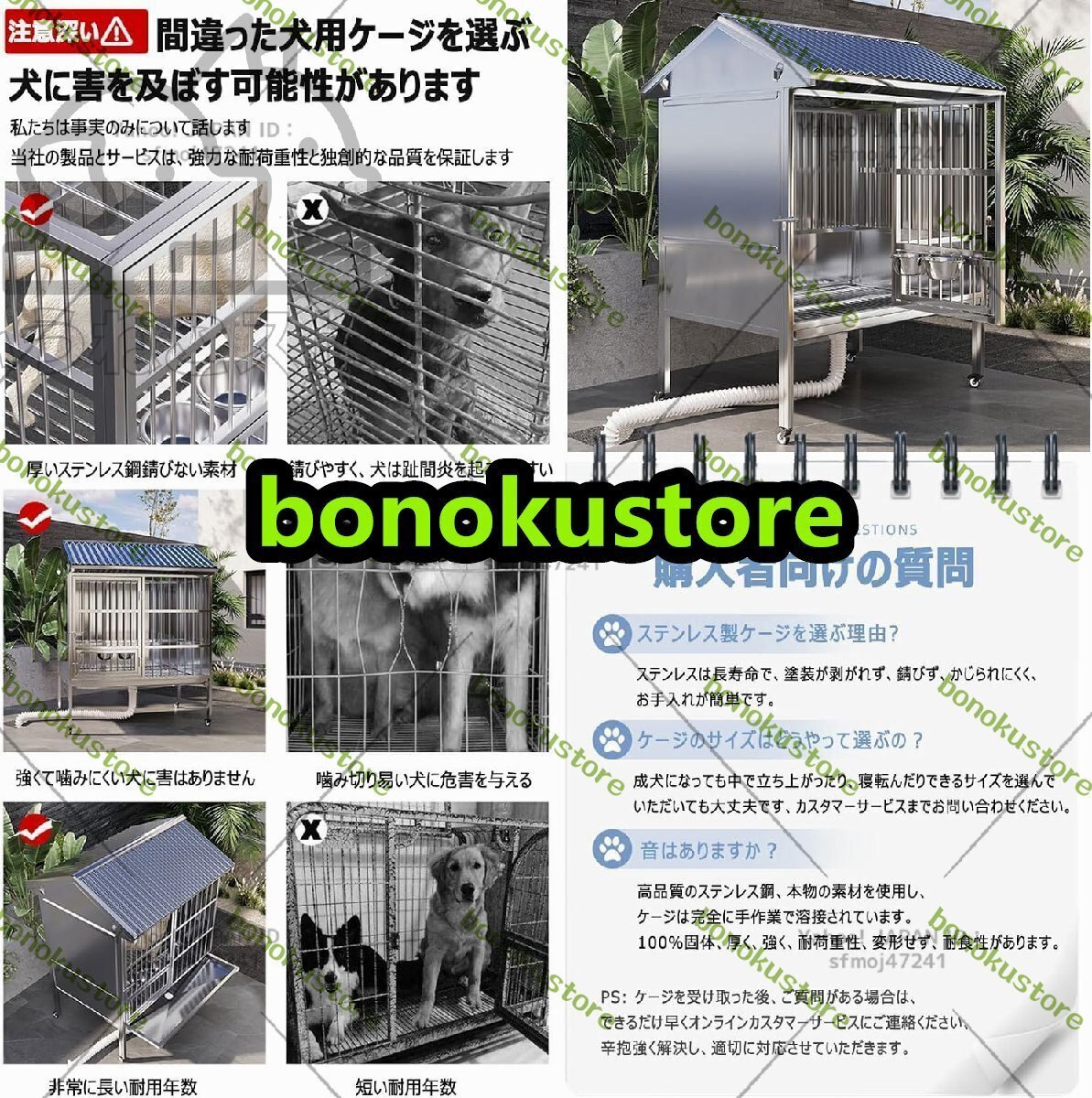 商品説明 商品説明 【商品詳細】★状態:新品未使用【高品質素材】:高品質の厚みの丸管ステンレス鋼で作られ、厚みのあるフレームは耐荷重性が強く、厚みのあるステンレス鋼の床は犬が踏み込むのがより快適で、屋外の屋根断熱ボードがアップグレードされ、耐食性、熱伝導抵