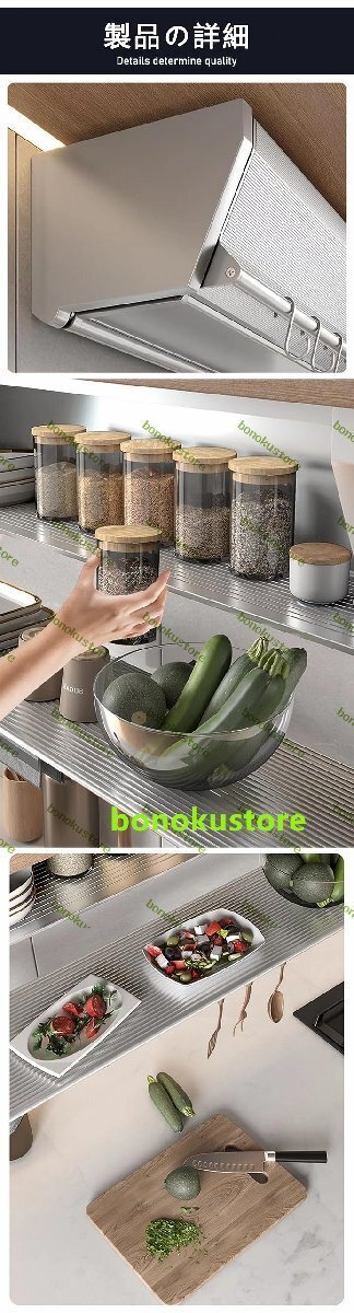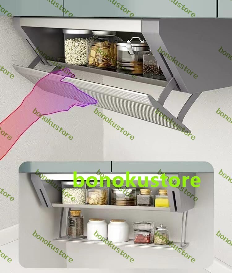 商品の説明 名称:多機能ドロップダウン昇降ロッカー 材質:アルミニウム合金+炭素鋼 サイズ:L50*W21.5*H15CM/L60*W21.5*H15CM 色:銀色、黒い 特徴:簡単で現代的で、密封防塵・油汚れ防止、ドロップダウン・リフト・折りたたみ、多機能収納、取りやすく、省スペース
