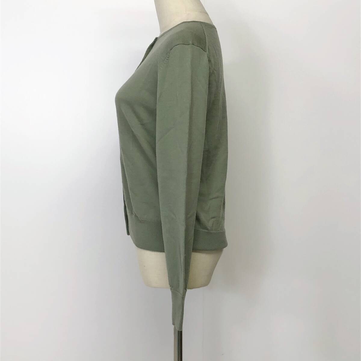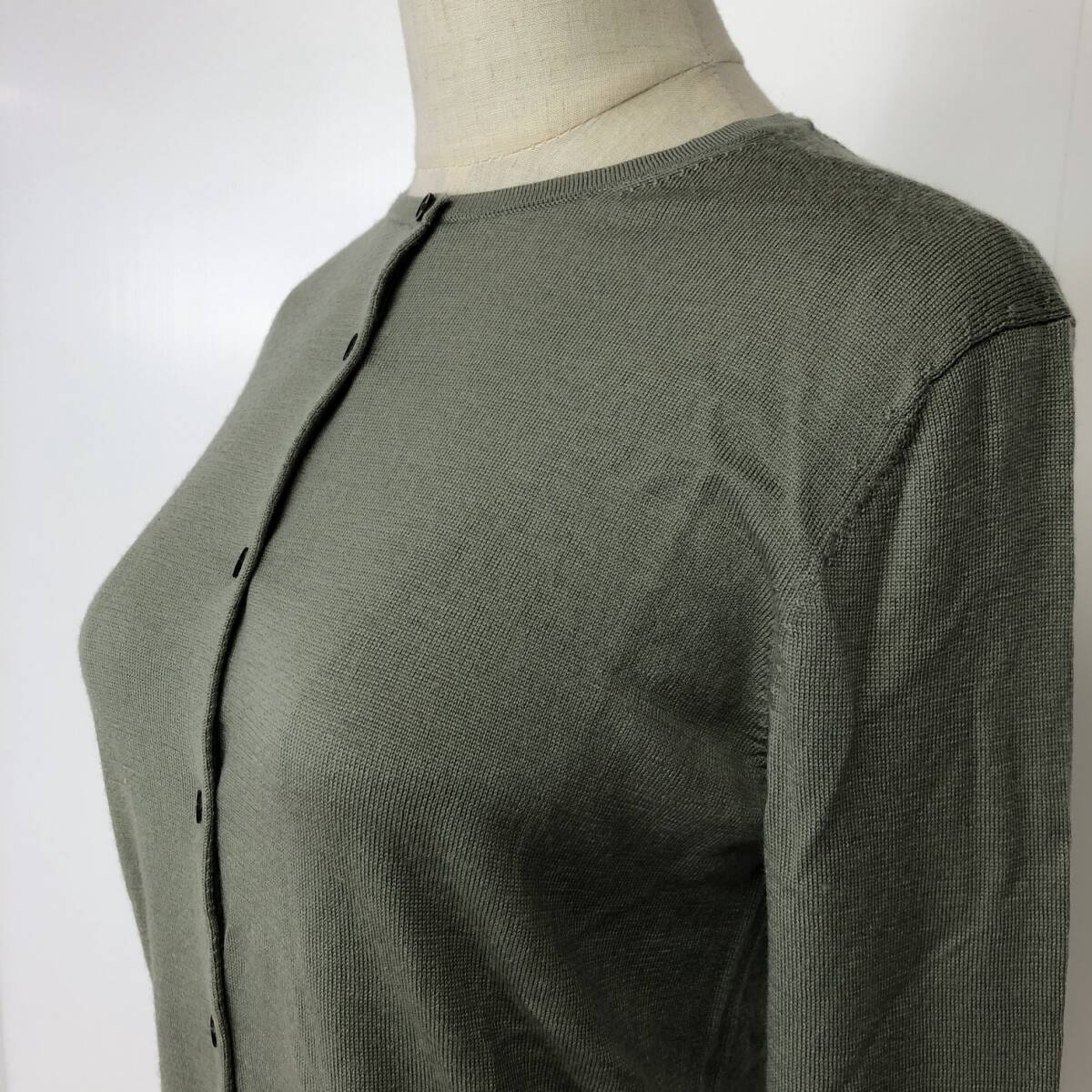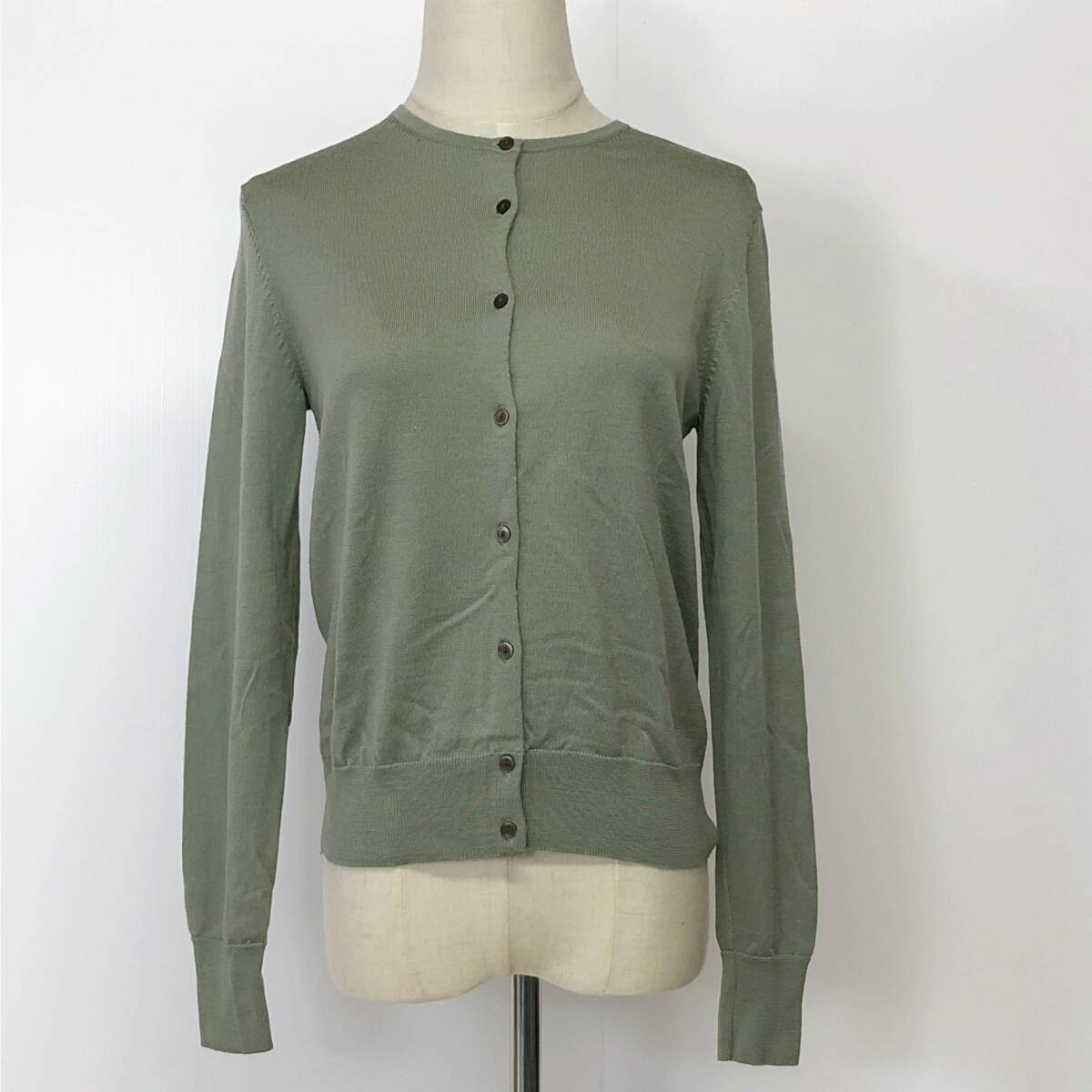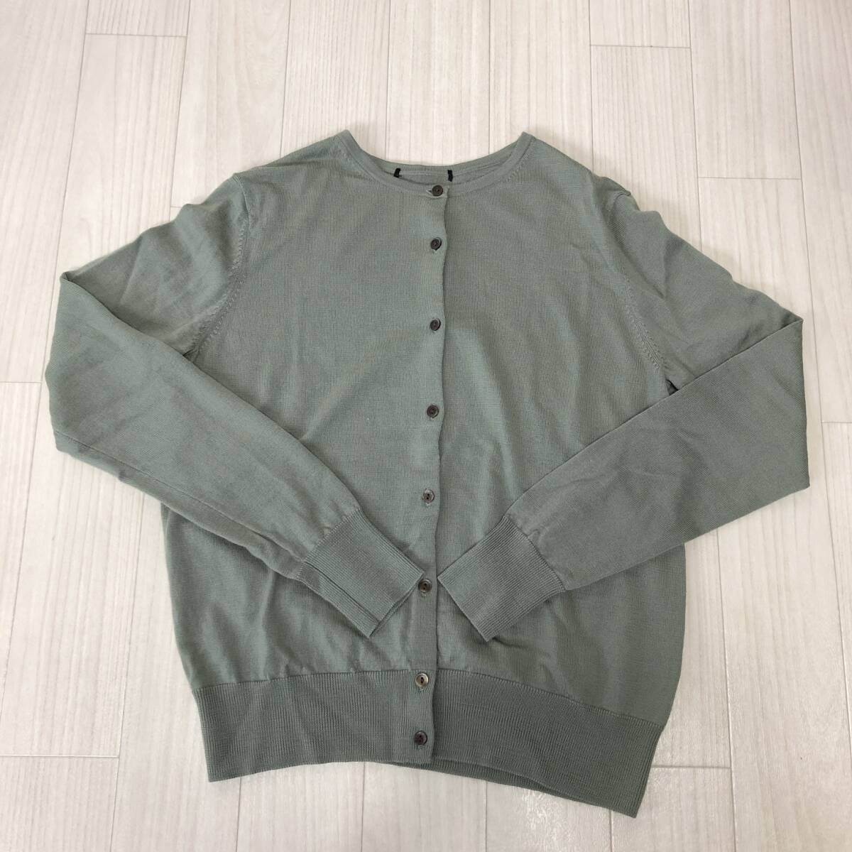 Y1290 美品 UNIQLO ユニクロ レディース カーディガン 長袖 丸首 2つ穴ボタン ベトナム製 グリーン 緑 無地 毛100% シンプル おしゃれ