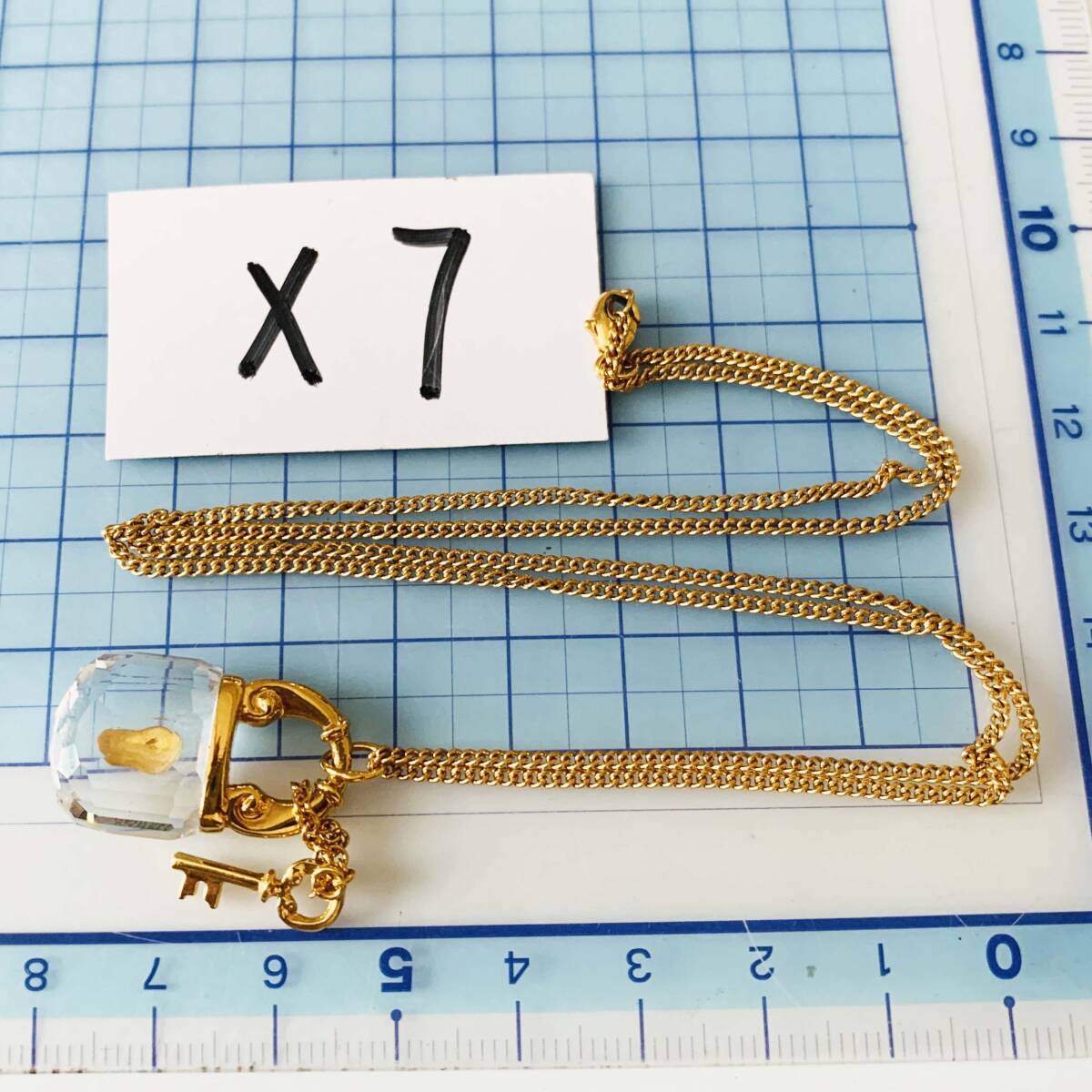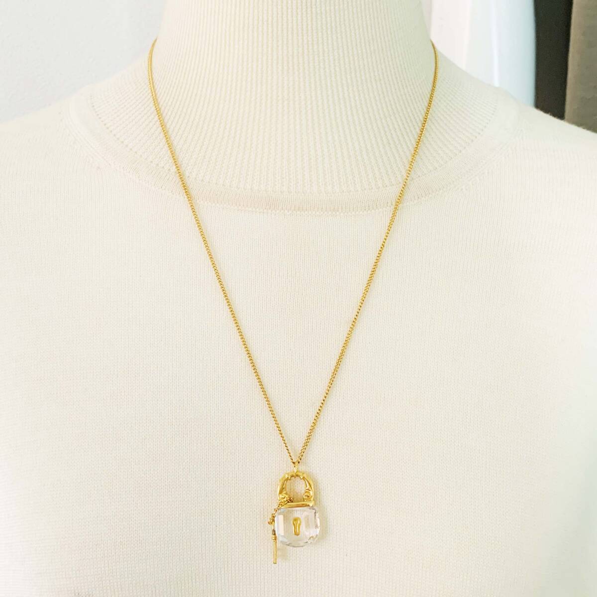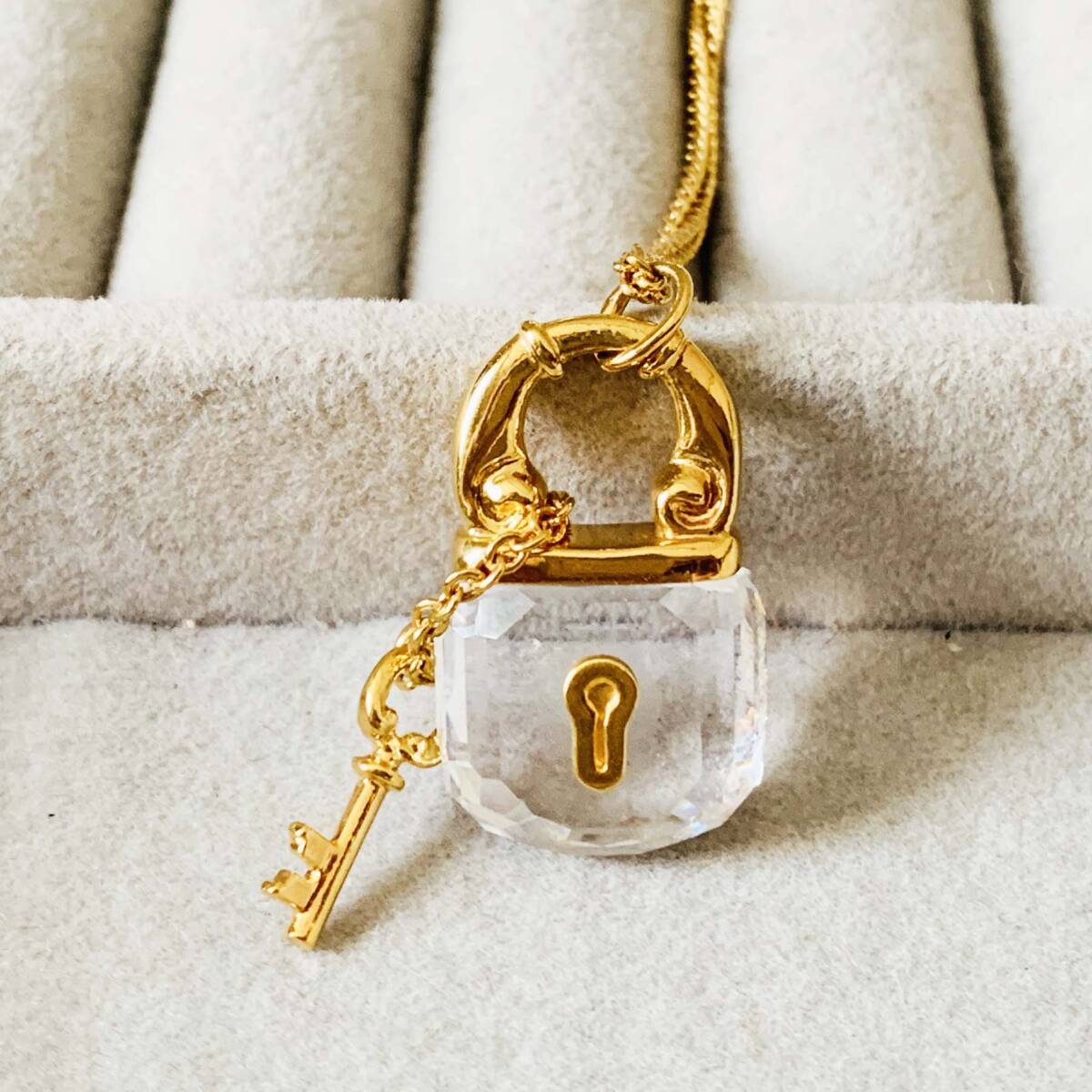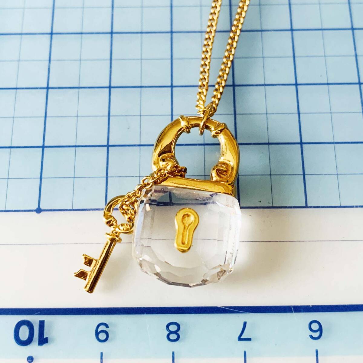 未使用に近い SWAROVSKI スワロフスキー 南京錠 鍵デザイン クリスタル ペンダントトップ ゴールドロングネックレス No.X7