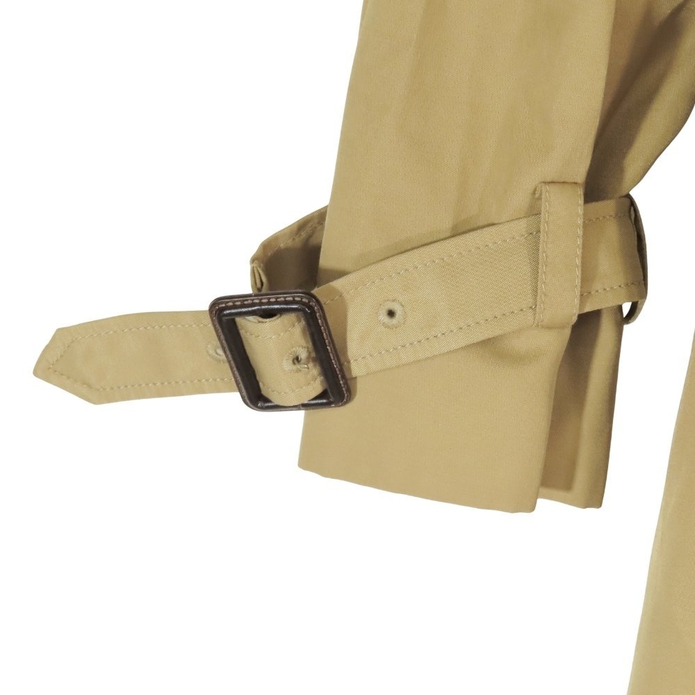 仕様:細身のトレンチコート。右肩にガンパッチが付いたデザイン。肌触りが良く若干の光沢感があります。