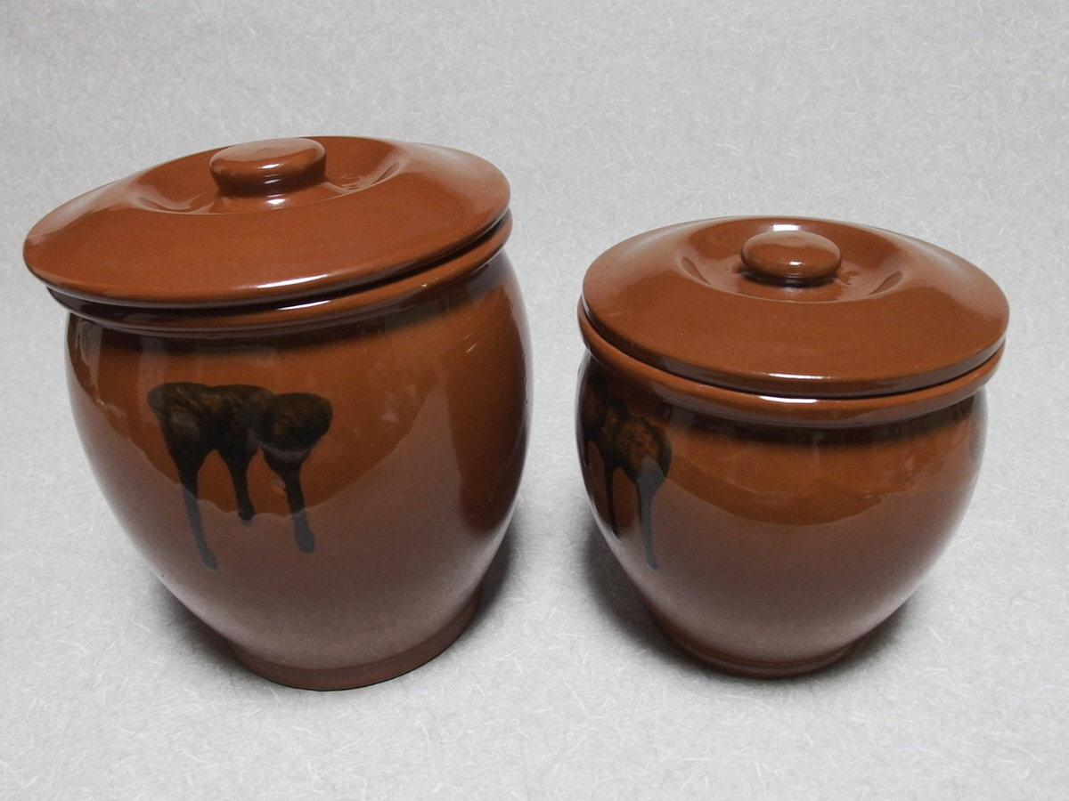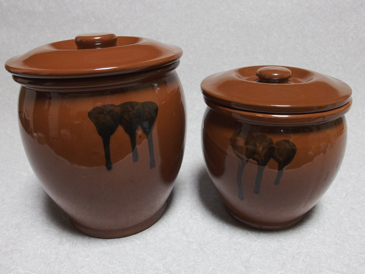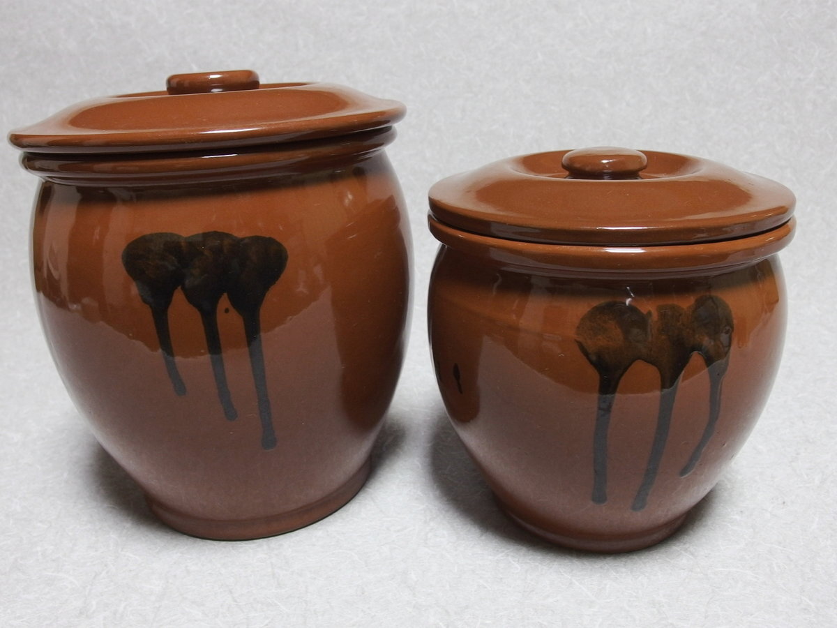 日本製 常滑焼【 久松窯 2点セット 蓋付丸壺 】となります