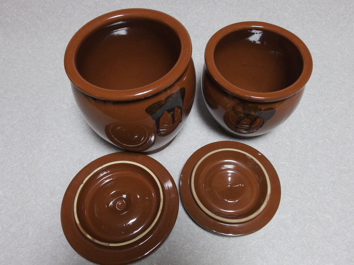 日本製 常滑焼【 久松窯 2点セット 蓋付丸壺 】つぼ 梅干し 味噌 漬物 ぬか漬 甕 かめ 壺 ツボ 陶器製 保存容器