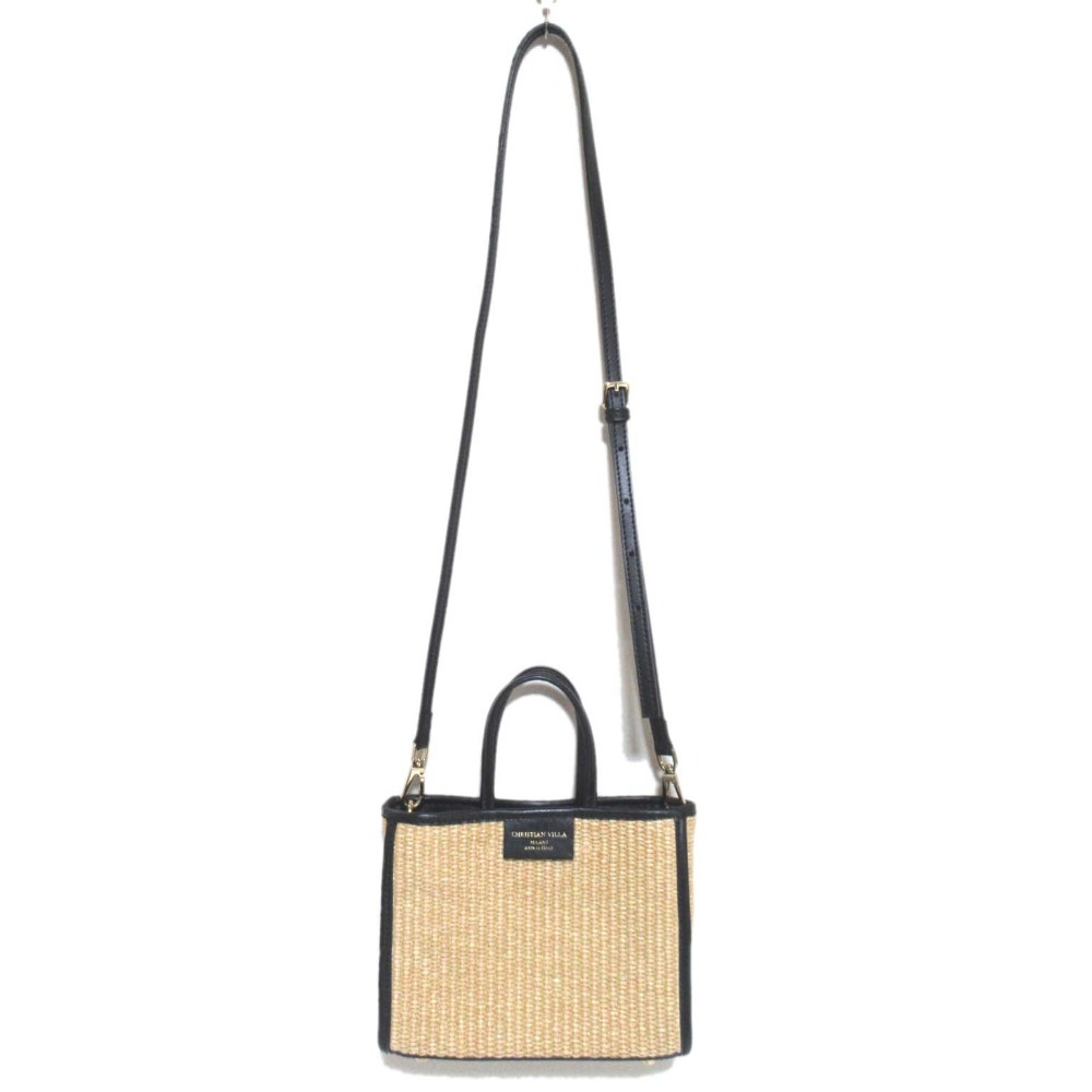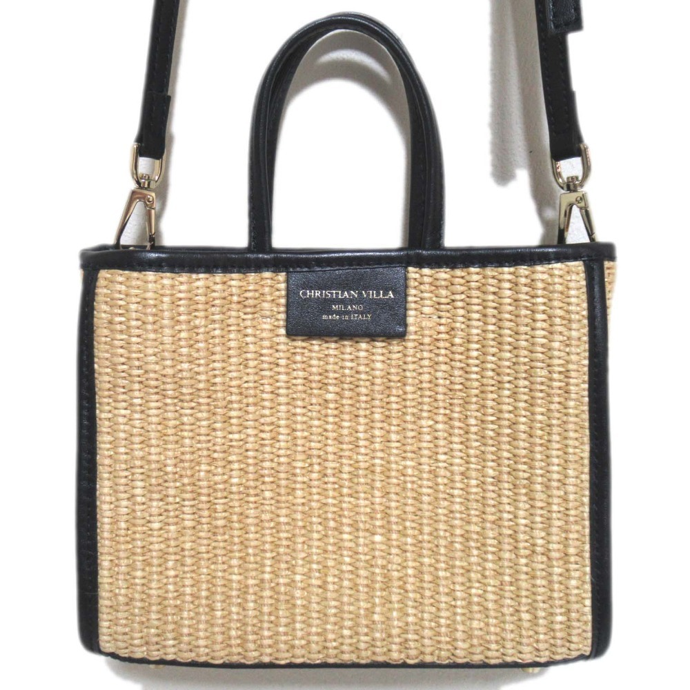 美品 CHRISTLAN VILLA クリスチャンヴィラ 2WAY ラフィア かご ショルダーバッグ ハンドバッグ ナチュラル×ブラック