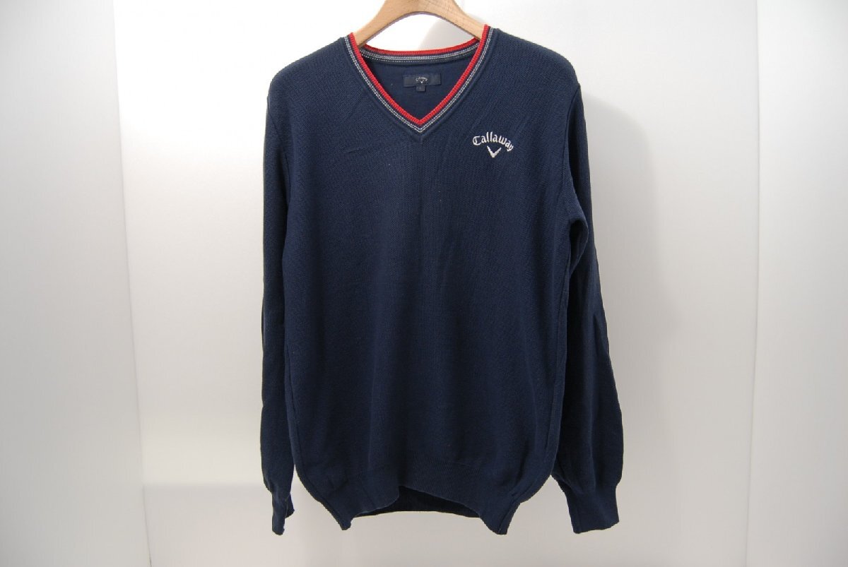 coco 中古【SALE】 キャロウェイ Callaway メンズ ニット L 紺 ネイビー 長袖Vネックセーター シンプル レターパックプラス発送可 55981