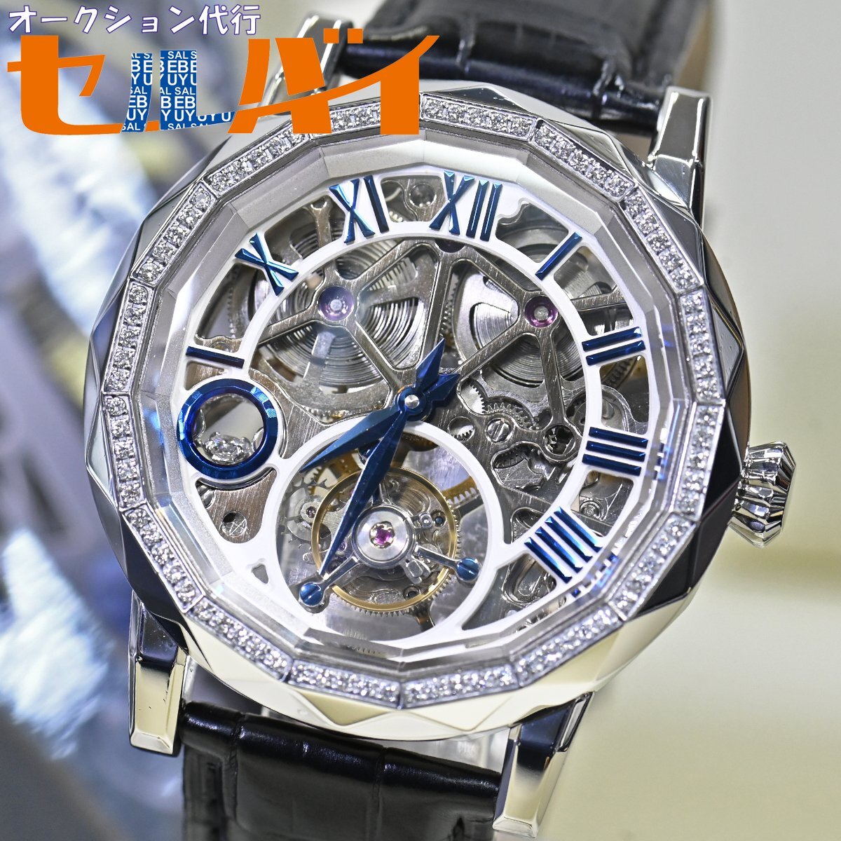 メモリジンの特許ダンシングストーン ダイヤモンド トゥールビヨンです。 8時位置にオープンワークされた極僅かな衝撃で、約24秒間宝石を揺らし続ける『ダンシング・ストーン』の特許を採用して創作された、どんなブリリアントカットよりもダイヤを煌びやかに魅せるウォッチジュエリー。 116面のレーザーカットは多くの工程を経て、加工されています。 市場にも全く出てこないモデルなのでお探しの方も非常に多いかと思います。 ※基本動作確認済。 |