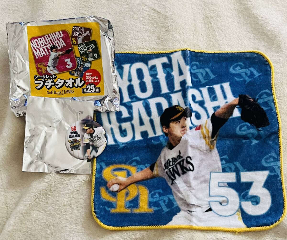 ◎ソフトバンクホークス 五十嵐亮太 プチタオル 缶バッジ