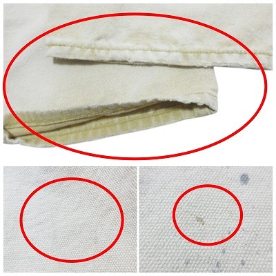 【状態】・左太もも付け根、両裾、右後ろ裾付近に汚れがありますが、その他に目立ったダメージはなく、問題なくご使用いただける商品です。 ※あくまでも中古品ですので掲載写真や記載内容をご確認いただき、ご理解の上ご購入ください。