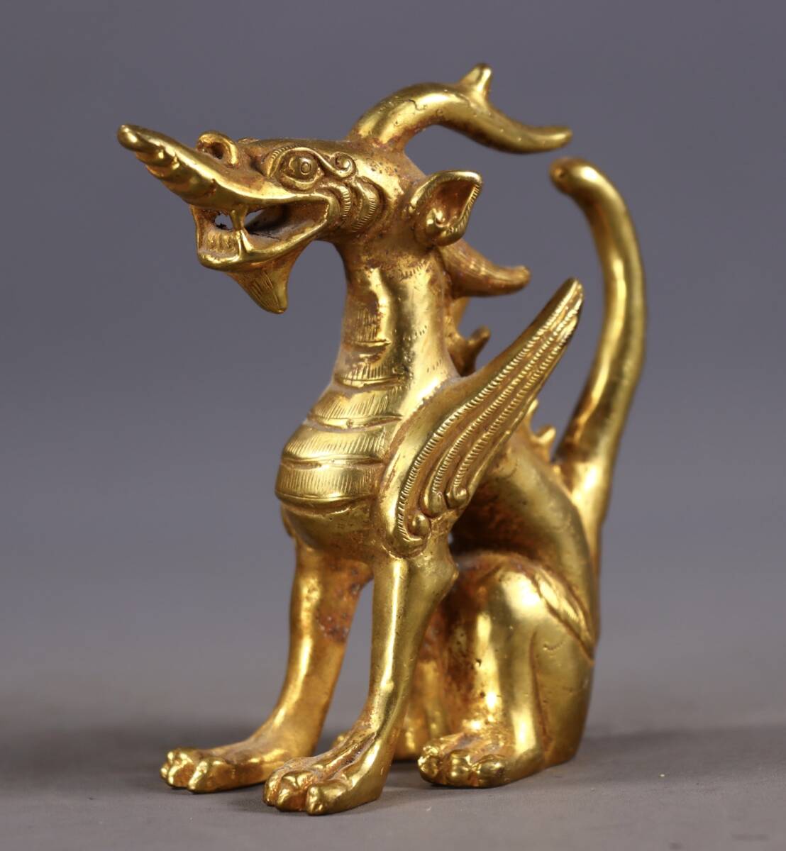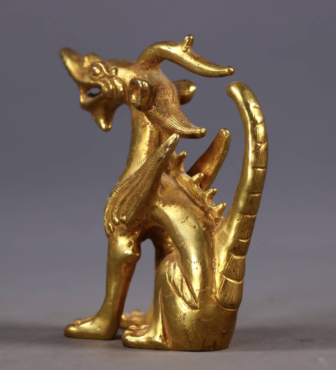 中国 唐時代 臻品旧蔵 銅金龍 古賞物 古美術 骨董品 唐物 細密細工 719