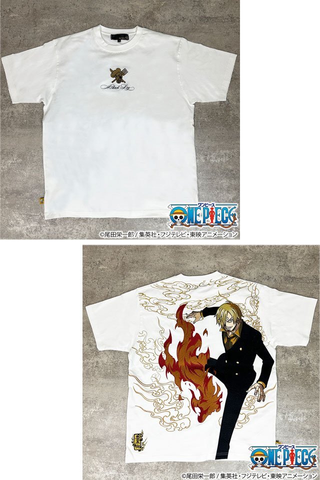 超人気のワンピースコラボに麦わらの一味の船長・ルフィの両翼がTシャツとなって登場!! その一人、黒足の二つ名を持つサンジのTシャツは背景には悪魔風脚で燃える業炎をプリント!! ブランドロゴにも引火する演出!! タバコの煙をなびかせながら、今にも蹴り上げるサンジは大迫力! ファン必見の商品をお見逃しなく!!! | |||||||||||||||||||||||||