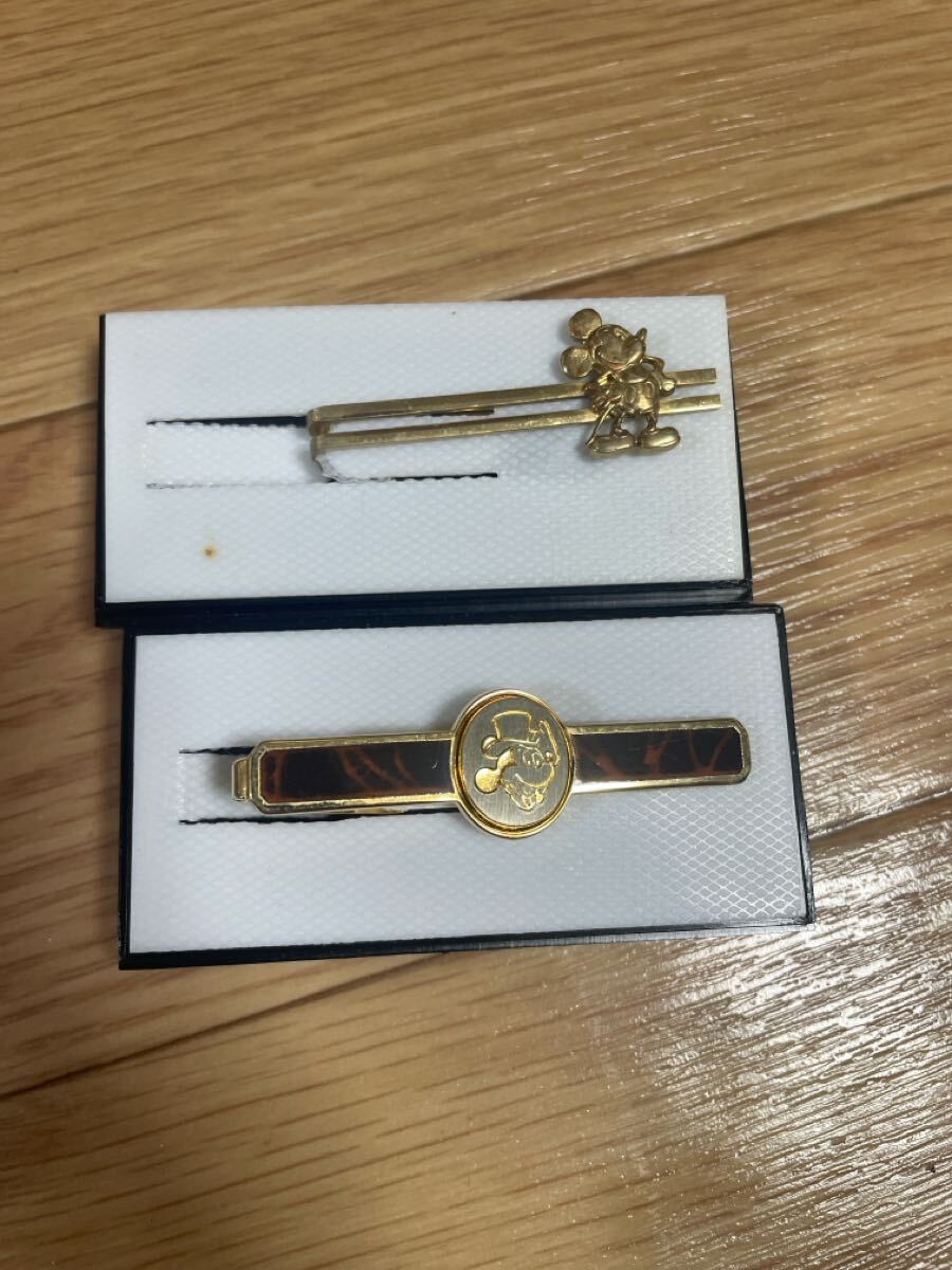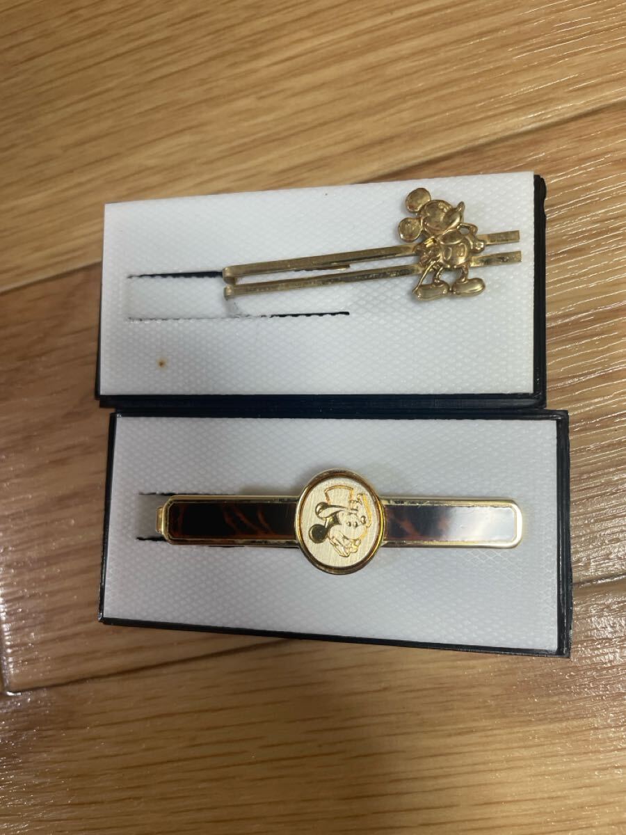 【ディズニー ミッキーマウス タイピン 2点セット】ヴィンテージ風/箱付き/昭和レトロ