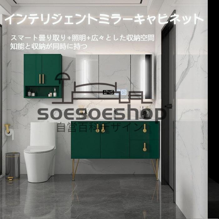★多機能ミラーキャビネット:LED鏡、 曇り止め、時間温度表示、収納