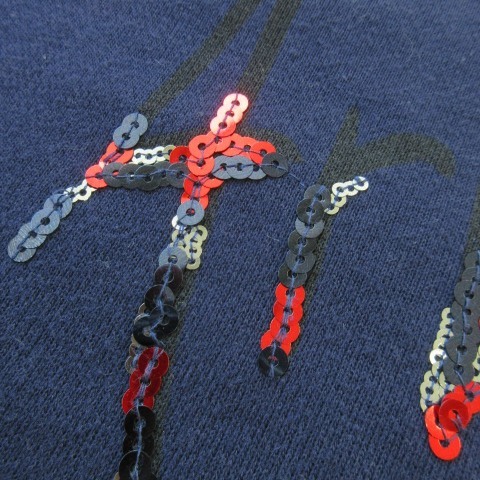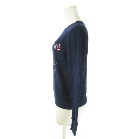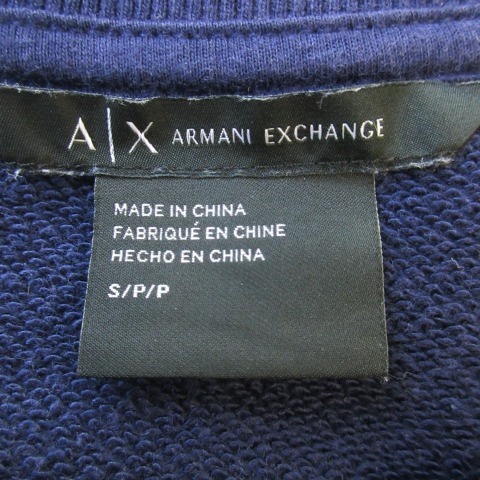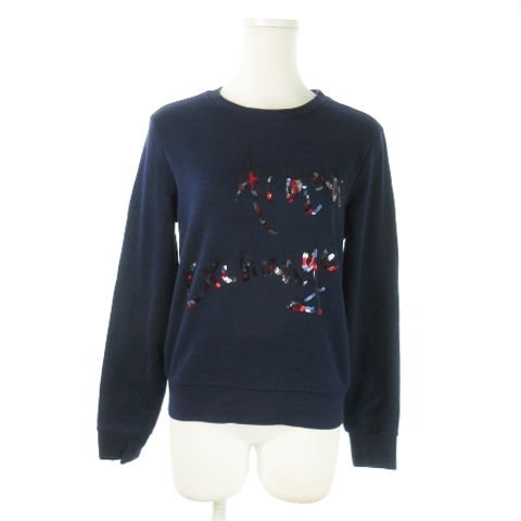 アルマーニエクスチェンジ A/X ARMANI EXCHANGE トレーナー スウェット ラウンドネック 長袖 スパンコール ロゴ 裏毛 S 紺 ネイビー