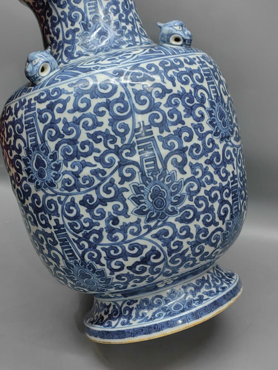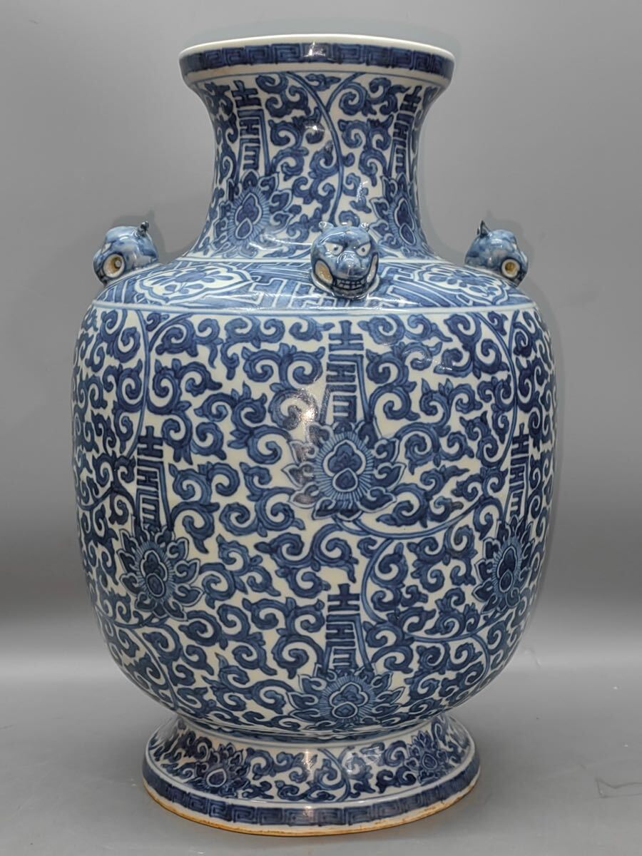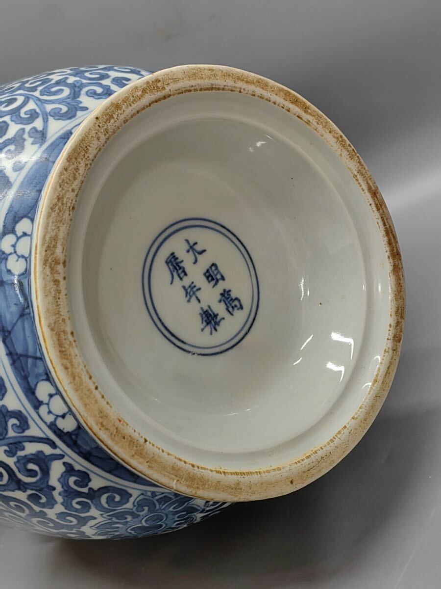 【竹河】中国古美術 明時代 青花 花瓶 瓶 時代物 唐物 古玩 骨董 藏出 置物 骨董品 当時物 置物 飾壺 中国磁器 染付 高さ31cm sa33