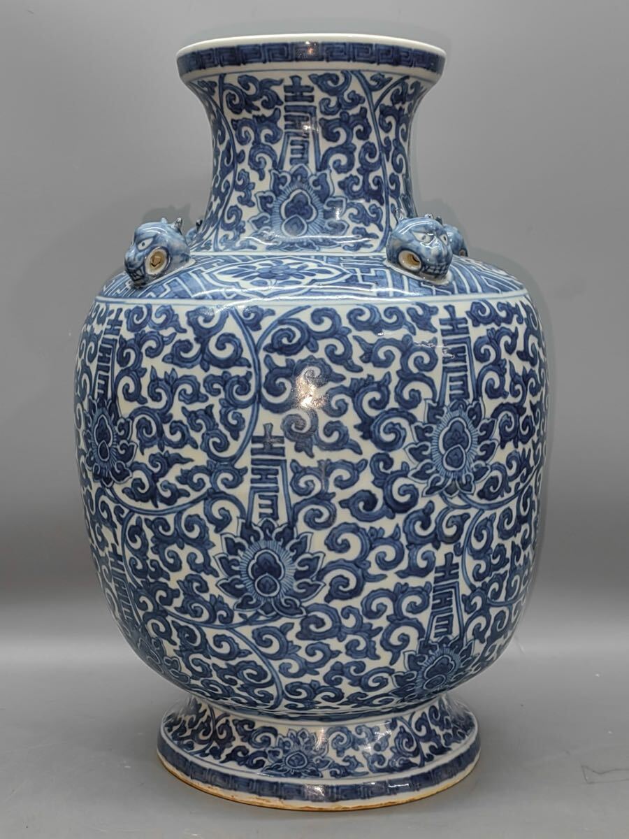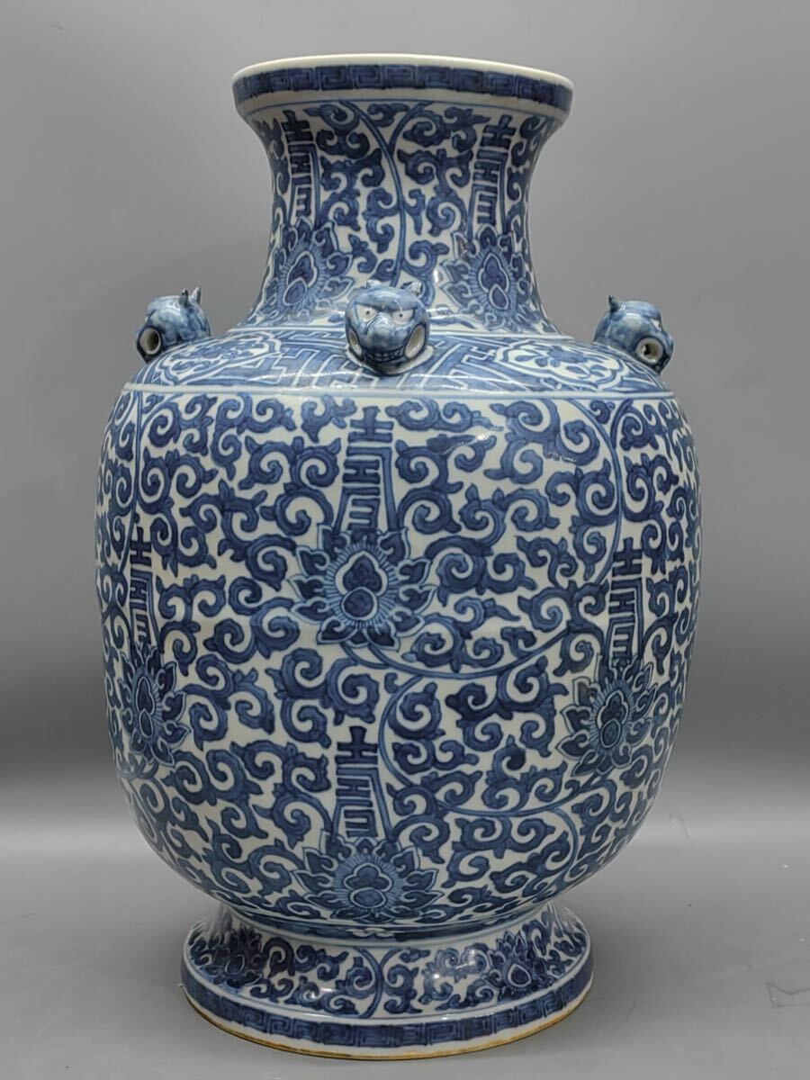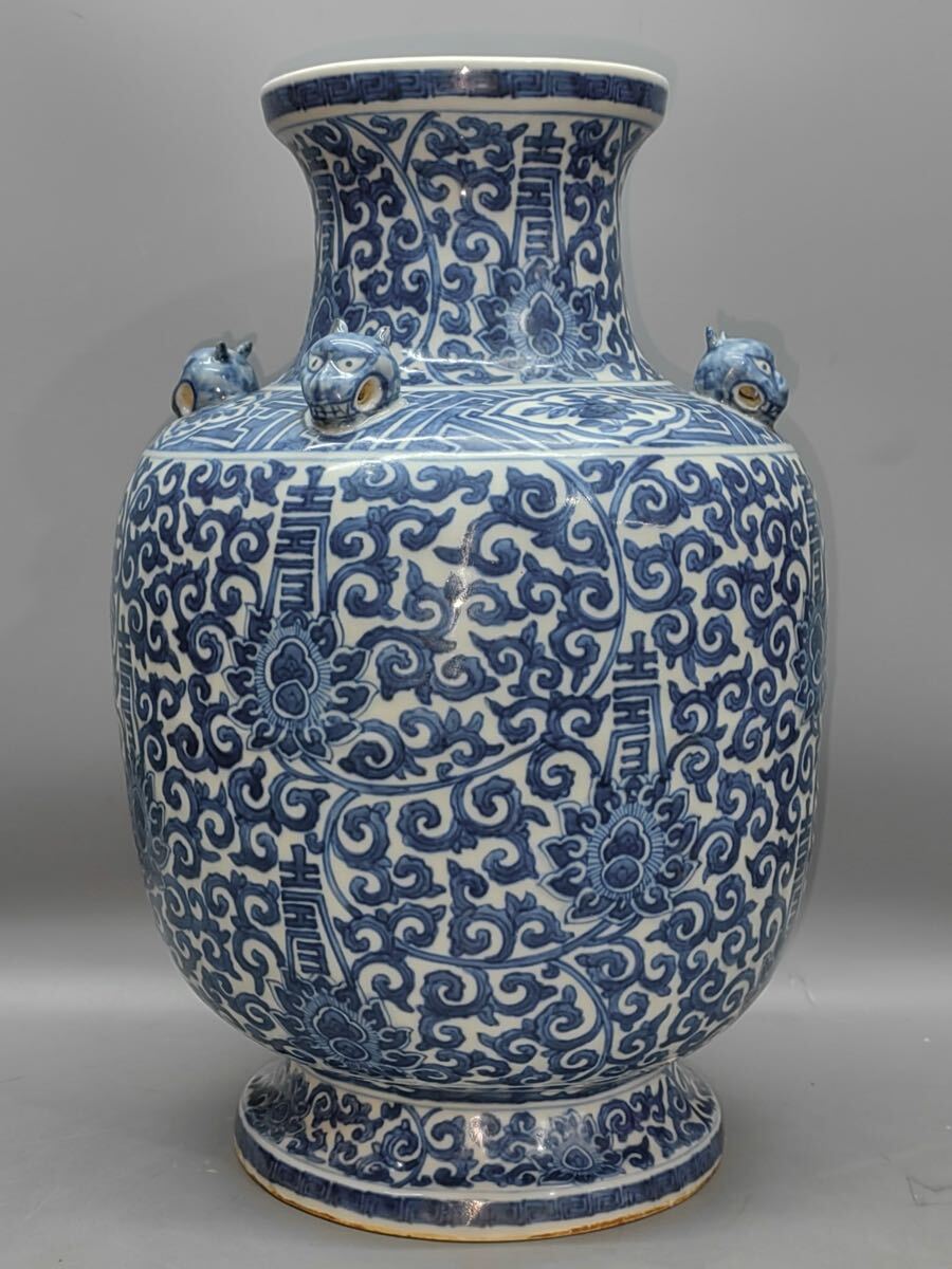【竹河】中国古美術 明時代 青花 花瓶 瓶 時代物 唐物 古玩 骨董 藏出 置物 骨董品 当時物 置物 飾壺 中国磁器 染付 高さ31cm sa33