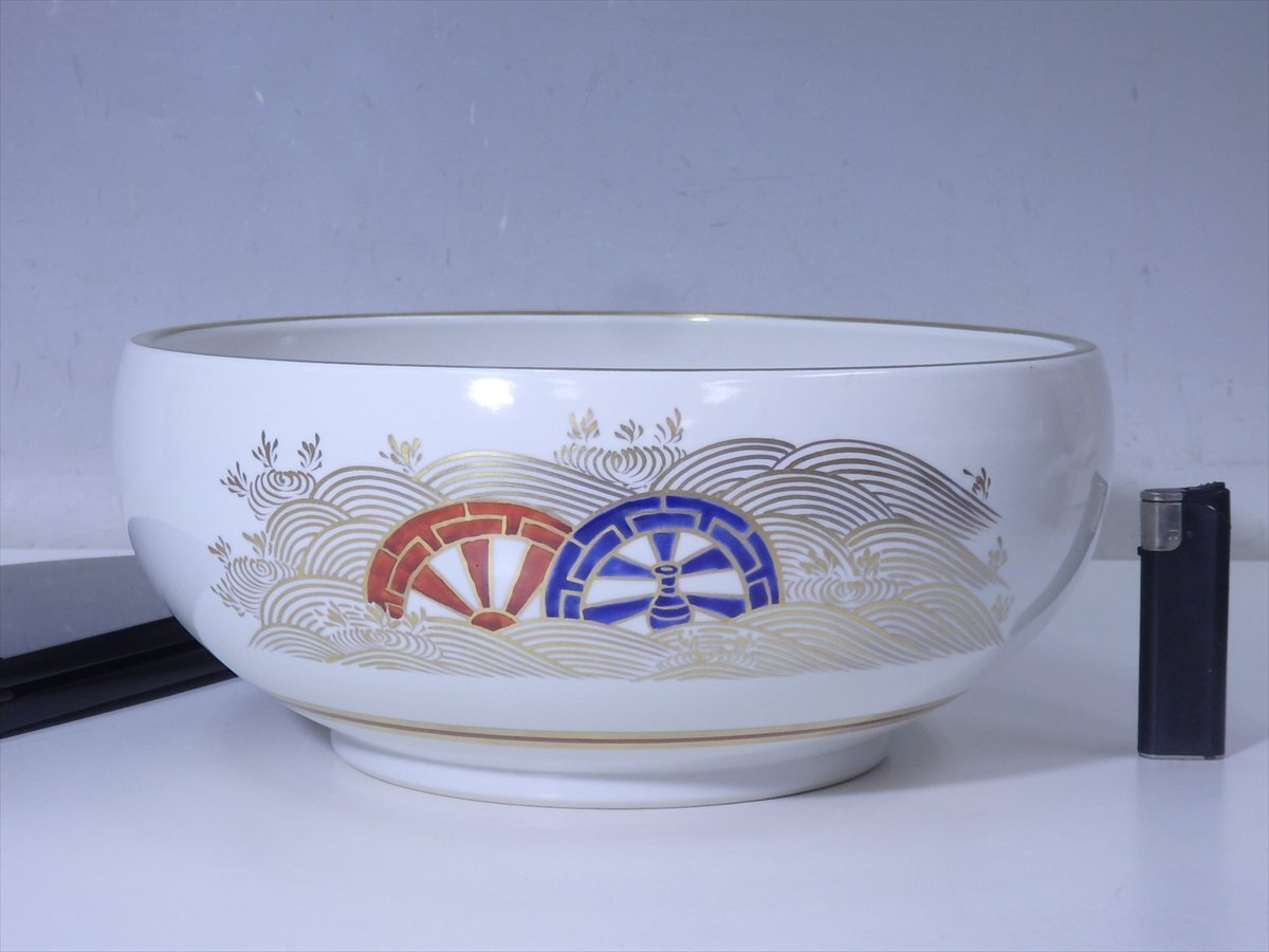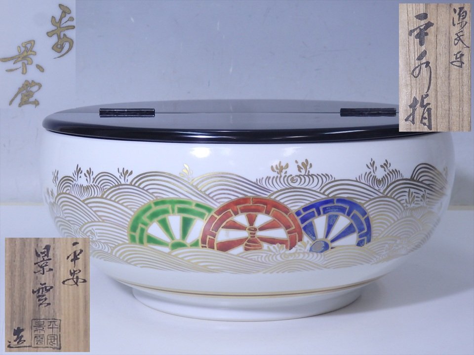 ●状態良好!平安 景雲造【源氏車 平水指 共箱】セール! 手塚景雲 直径30×高さ13.5cm 父は京焼の名工 手塚玉堂 茶道具 京焼 茶器