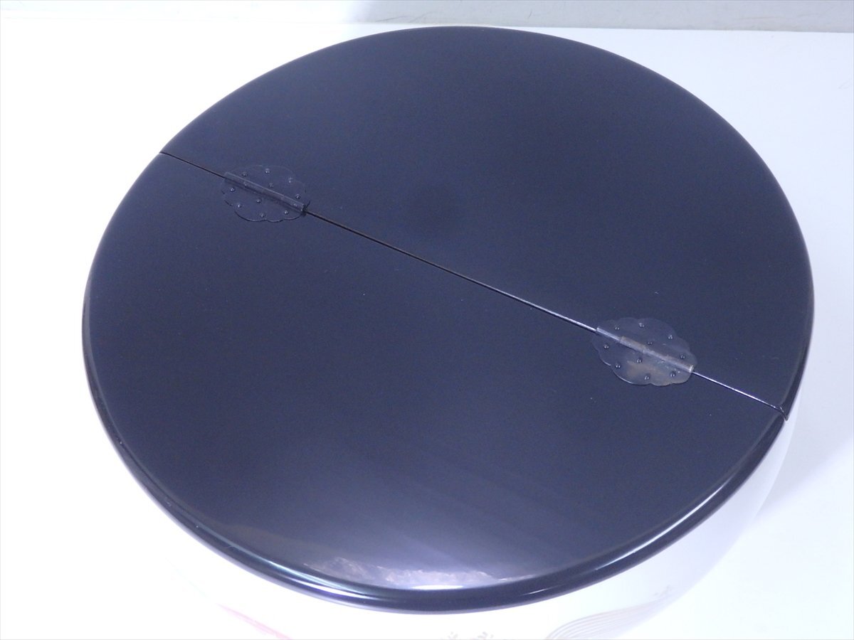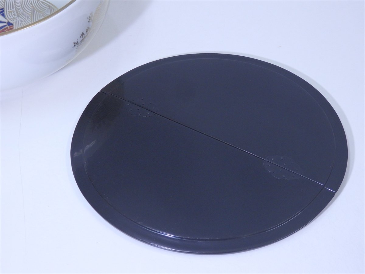 【管理番号5-0717183-12 スタッフコメント:iy】  ☆波に車が両面に、内側にも丸く描かれています。木製、真塗の割り蓋です。金具は銅製で、片方だけ、少し変色(塗装の剥がれ)があります。割れや欠けはなく、状態の良いお品です。共箱、共布付き。セール品につき、コンディションはご理解のうえノークレームノーリターンでお願いします。