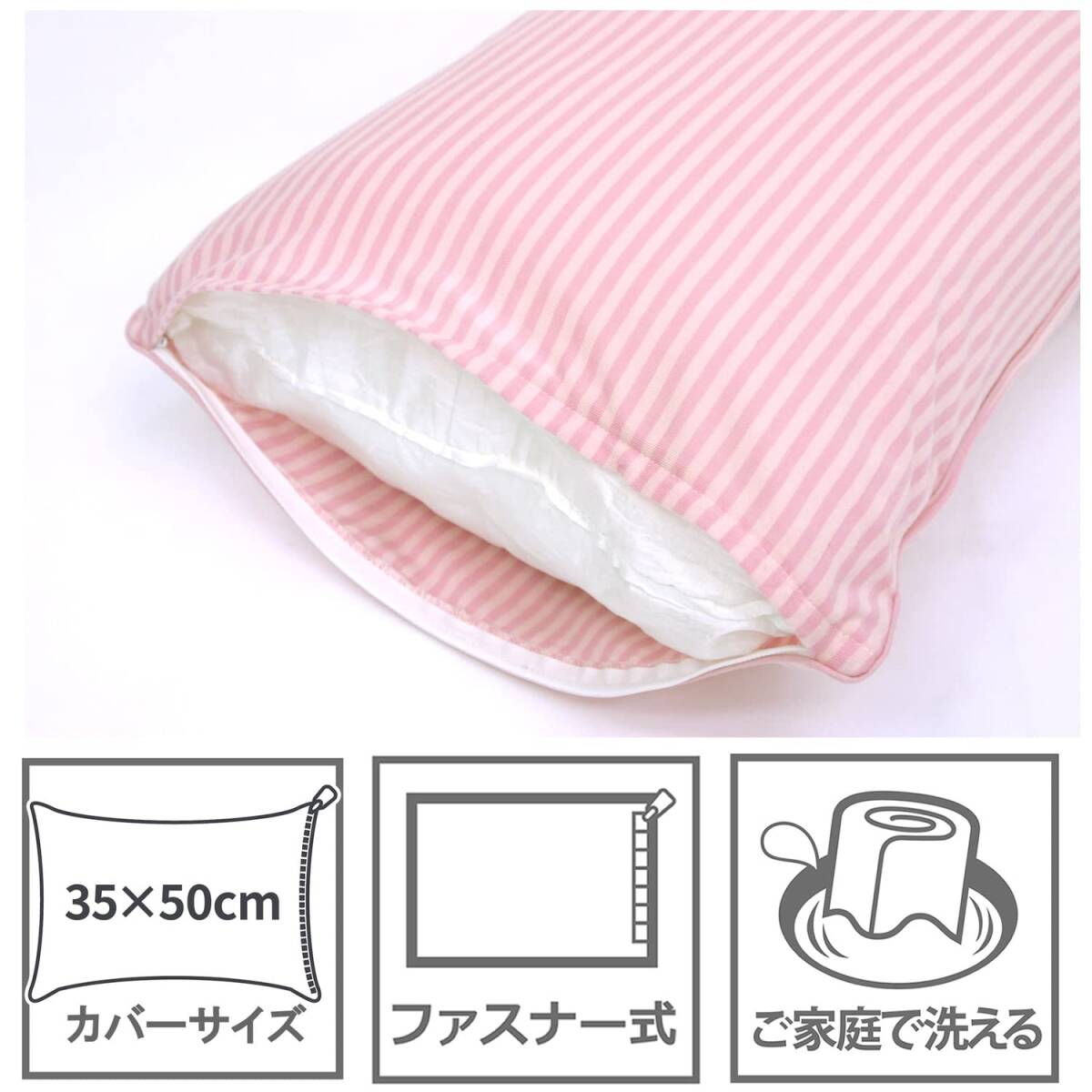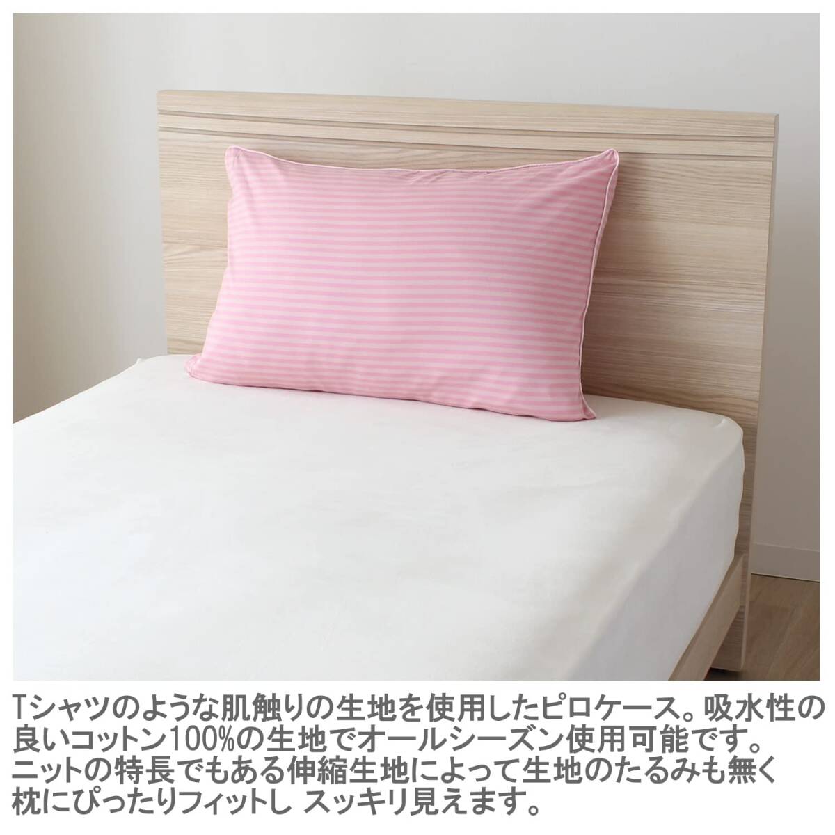 メリーナイト 枕カバー ボーダー柄 ピンク 約35×50cm ファスナー式 まくらが入れやすい 綿100% ニット素材 ピタッと装着 洗える オ