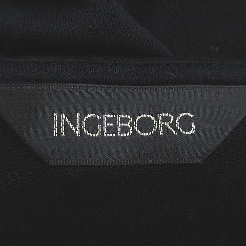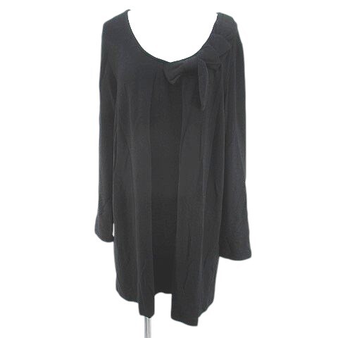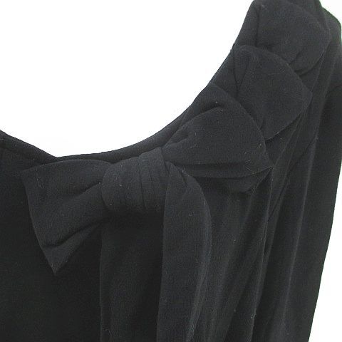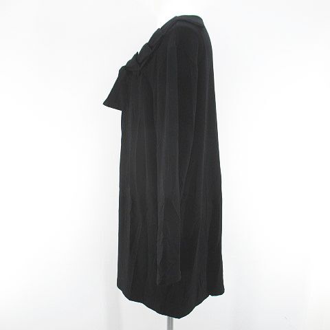 インゲボルグ INGEBORG 長袖 膝上 ミニ フレアワンピース ワンピース 11 黒系 ブラック 日本製 ストレッチ リボンモチーフ 無地 レディース