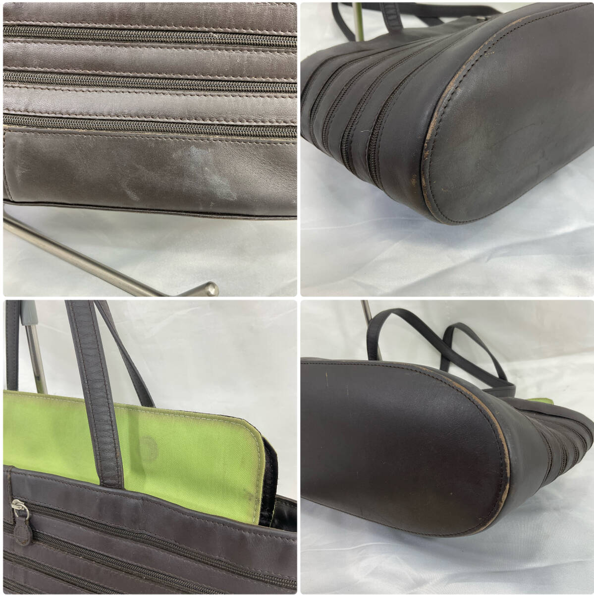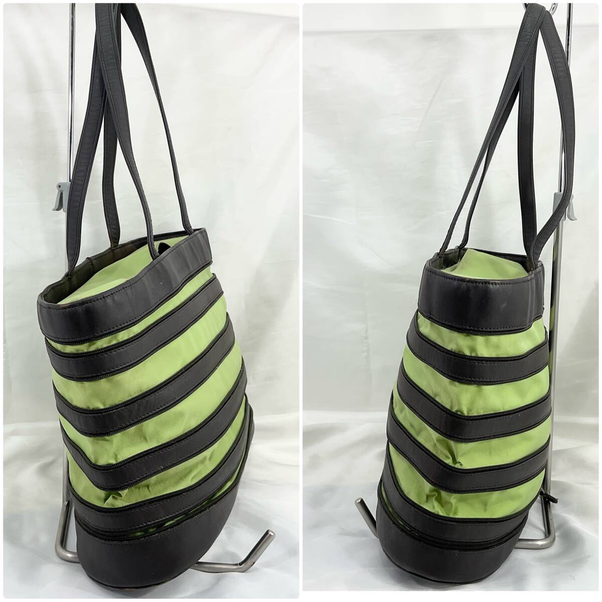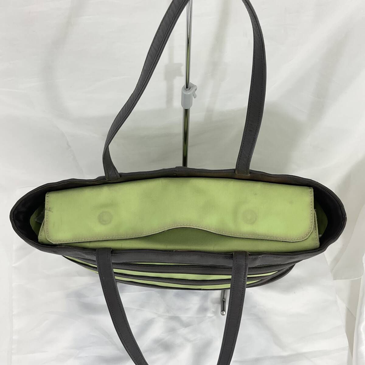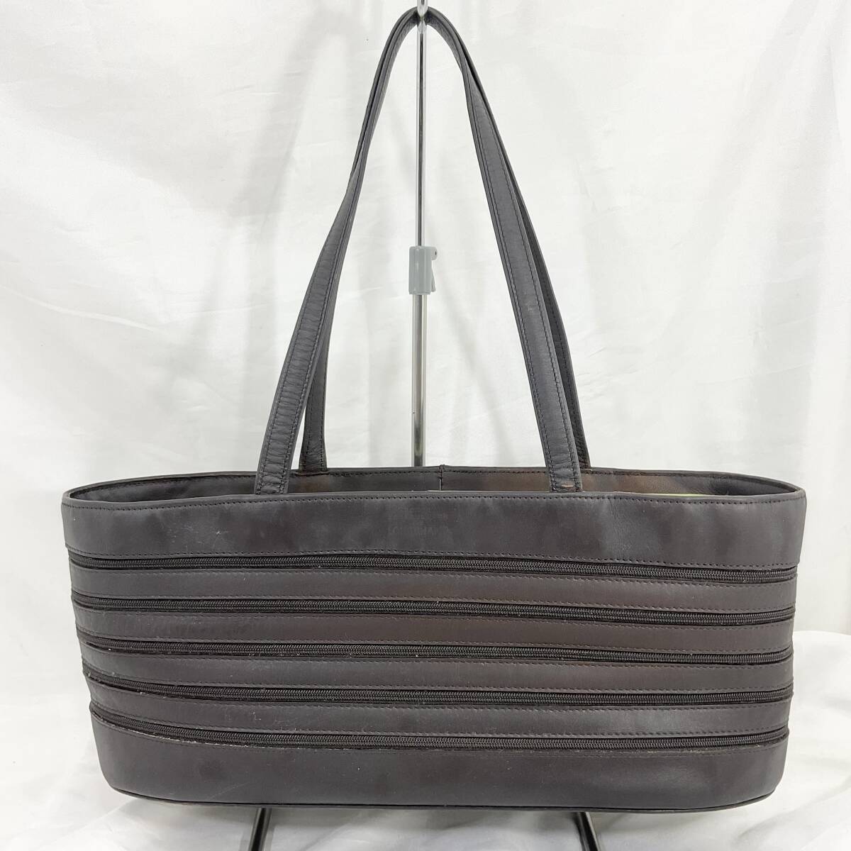 オフホワイトの上品な印象を与えるバッグです。ファスナーを開閉でデザインが変わるおしゃれなバッグです。使用感は有りますが、まだお使いいただけるものです。是非御検討ください。