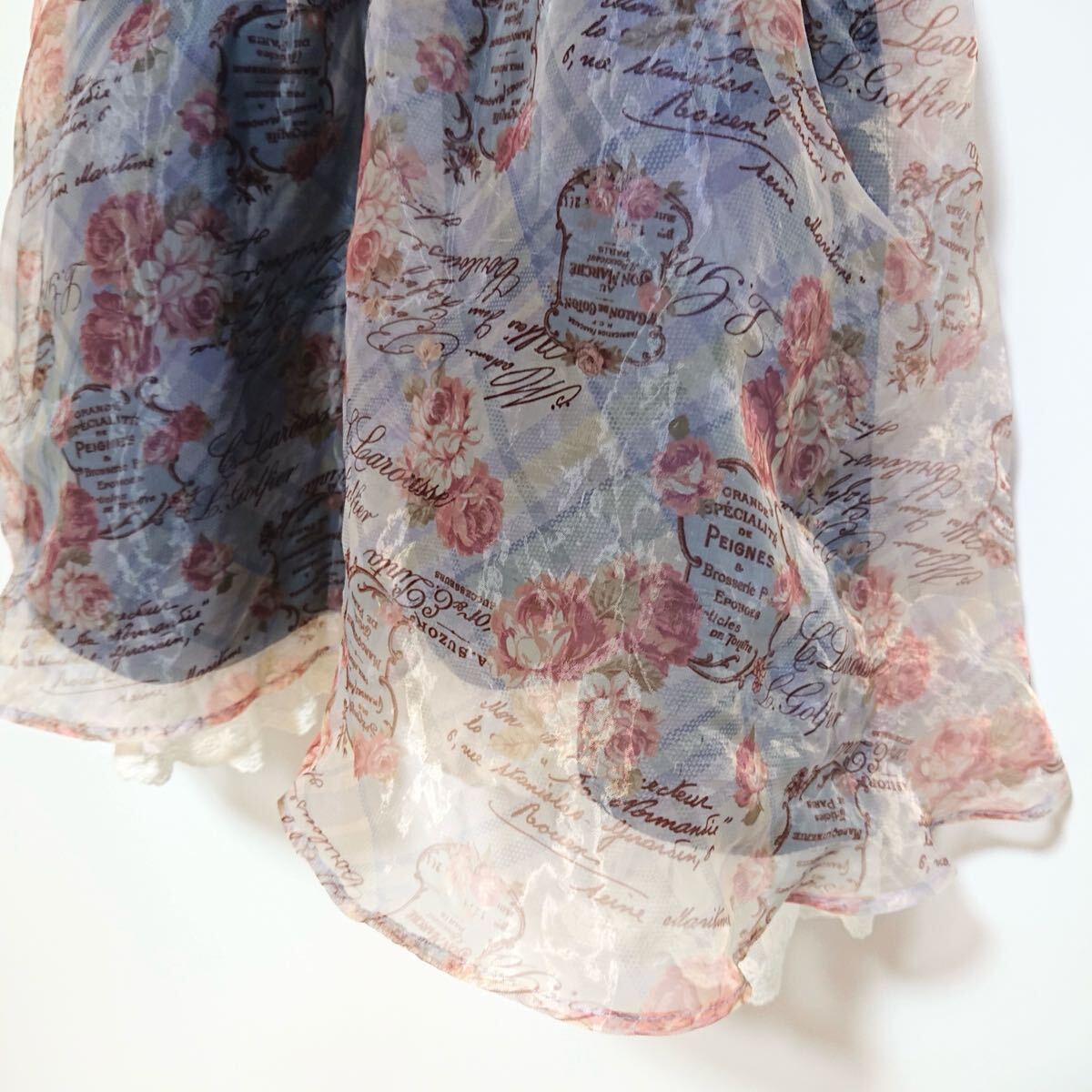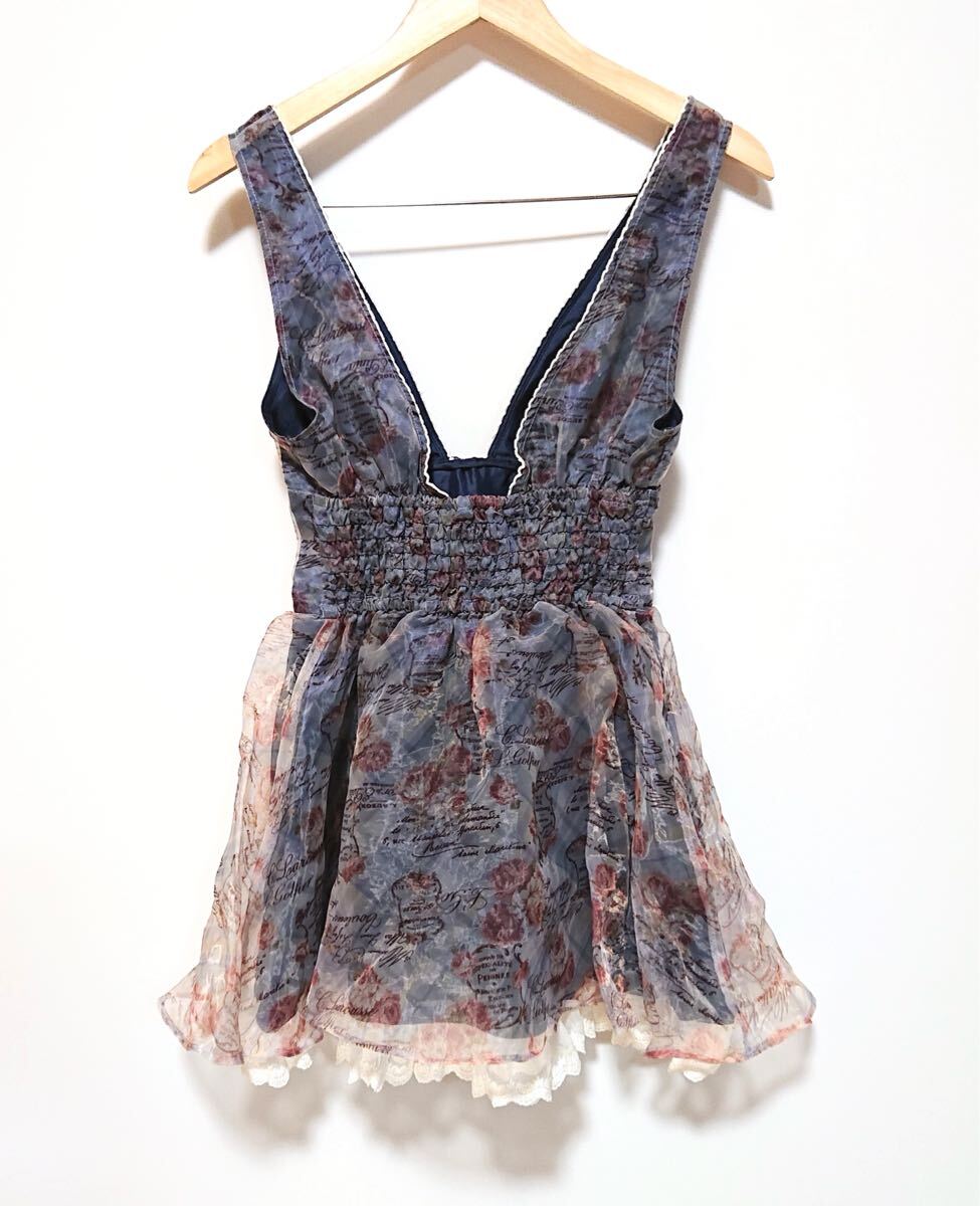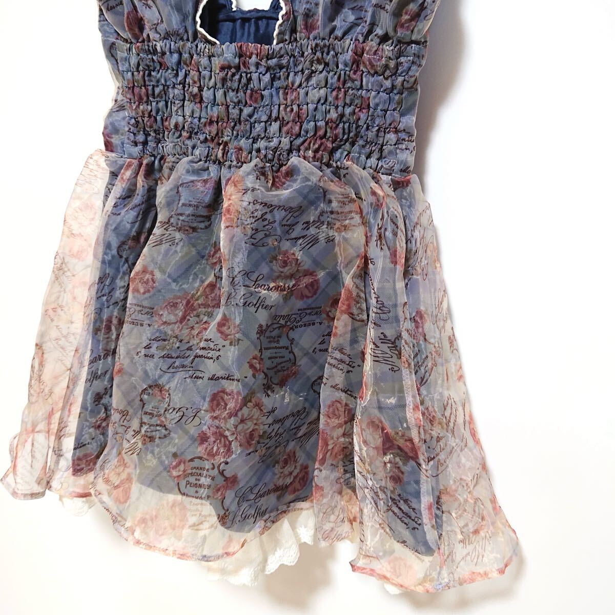 h3737gg LIZ LISA リズリサ サイズ0(FREE) オーガンジーワンピース 花柄 透け感 レディース かわいい チュニック リボン フリルレース