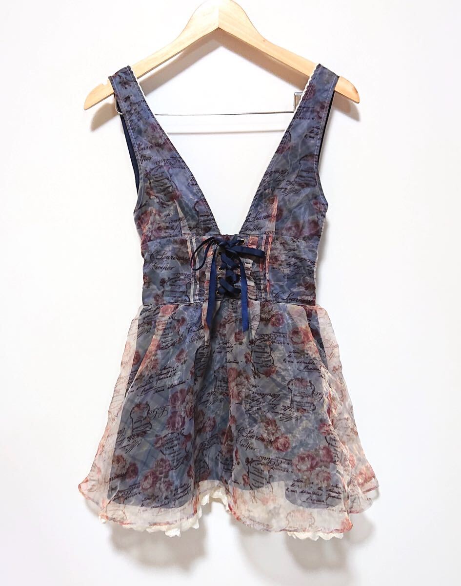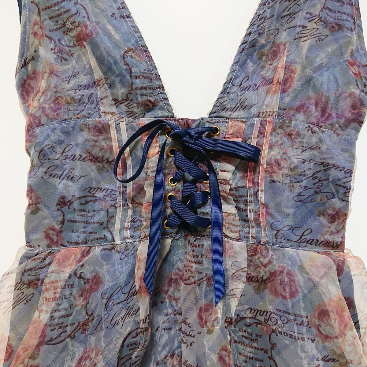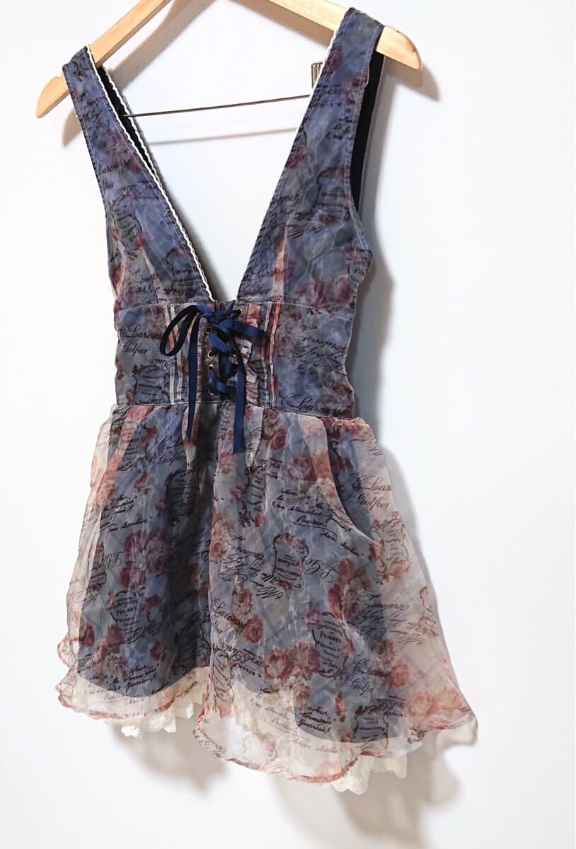 h3737gg LIZ LISA リズリサ サイズ0(FREE) オーガンジーワンピース 花柄 透け感 レディース かわいい チュニック リボン フリルレース