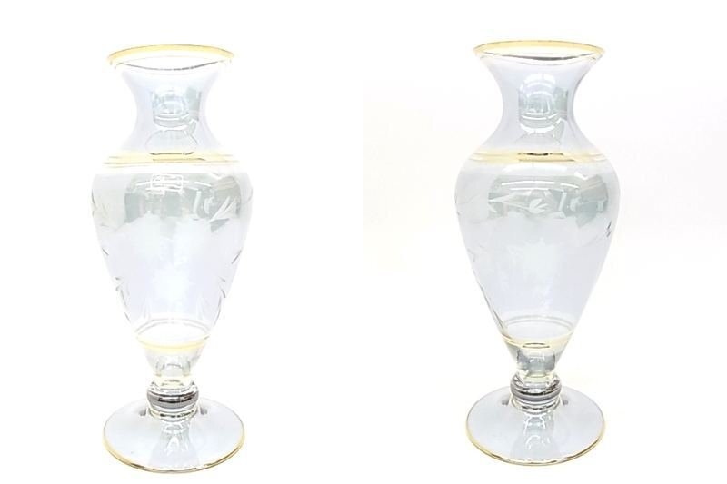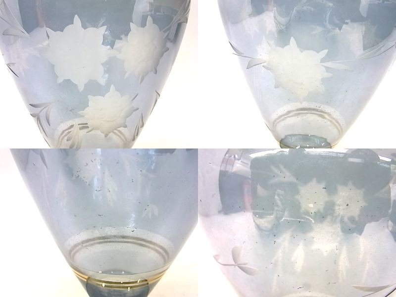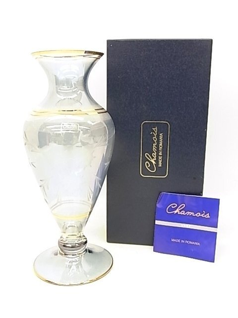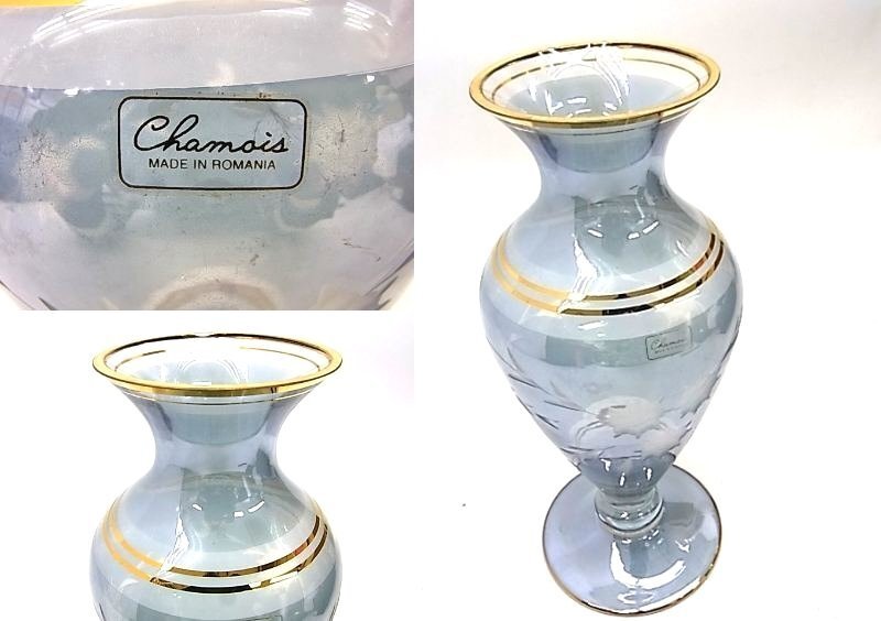 h0646 シャモイ Chamois ROMANIA 花瓶 フラワー 花柄 金彩 ブルー 元箱