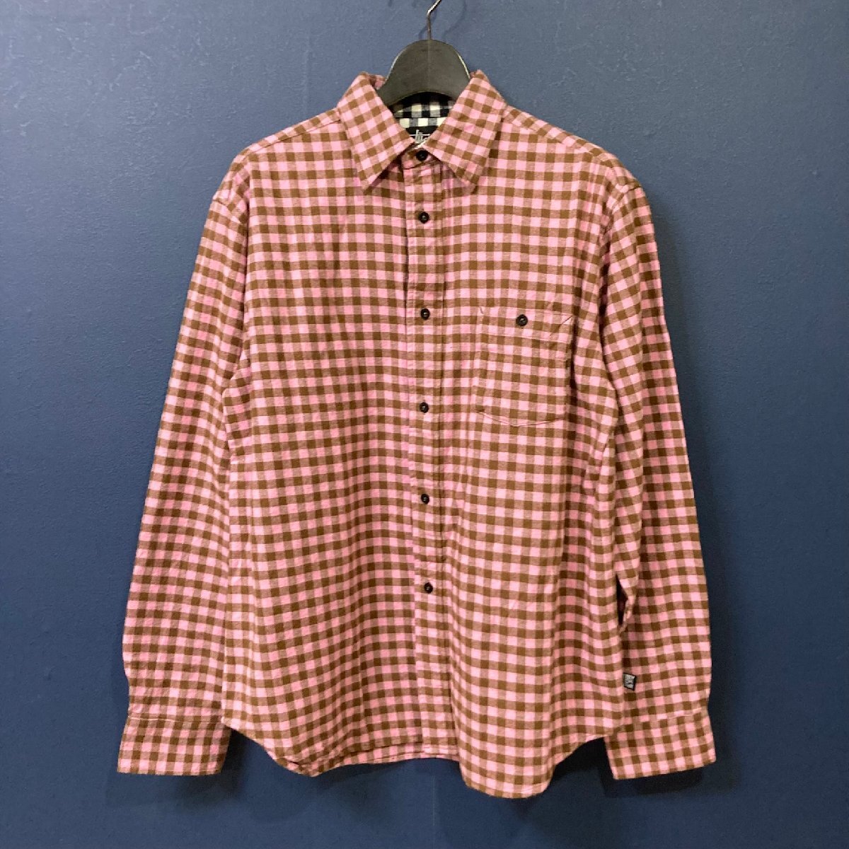 【18734Q036】ネルシャツ ステューシー STUSSY ブロックチェック柄 ピンク ブラウン 長袖 秋冬 オールド ヴィンテージ 古着 コレクション