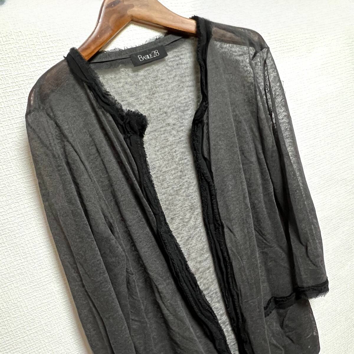 バジーレ28 BASILE28 カーディガン グレー系 ゆうパケットポスト可 (948573) *商品説明* ・表記サイズ: 表記なし 実寸サイズを参考にしてください ・色: グレー系 ・素材: 表記タグ不明 ・実寸サイズ(単位cm): 肩幅40、胸囲55、着丈65、袖丈45、 *平置き採寸となります。 ・商品状態: 左袖、上下穴あき 各所ほつれが見られます。 まだまだご使用頂ける商品です。普段着使いにいかがですか 購入はご了承頂ける方へお願いします。 | ||||||||