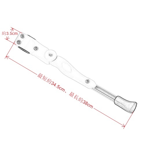 特長:長さが調整できるスポーツ自転車用のサイドスタンドです。ゴム製のインナーパッドを内蔵しており、繰り返し付け直しても自転車への傷を防止します 内部に搭載しているアルミニウム製の長方形のスライドパーツとボルト調整で、自転車に合わせて適切な高さにすることができます。 ロードバイク、クロスバイク、MTBなどのサイドスタンドの増設や交換におすすめです。 アルミニウム合金製で耐摩耗性に優れており、チェーンステーの装着部分にはゴム製のインナーパッドを搭載し自転車側の装着部分の滑り止めや保護をします。 スタンド全長は34.5~38cmまで自在にボルト調整で伸縮できるため、幅広いインチ数のスポーツ自転車に対応します。
